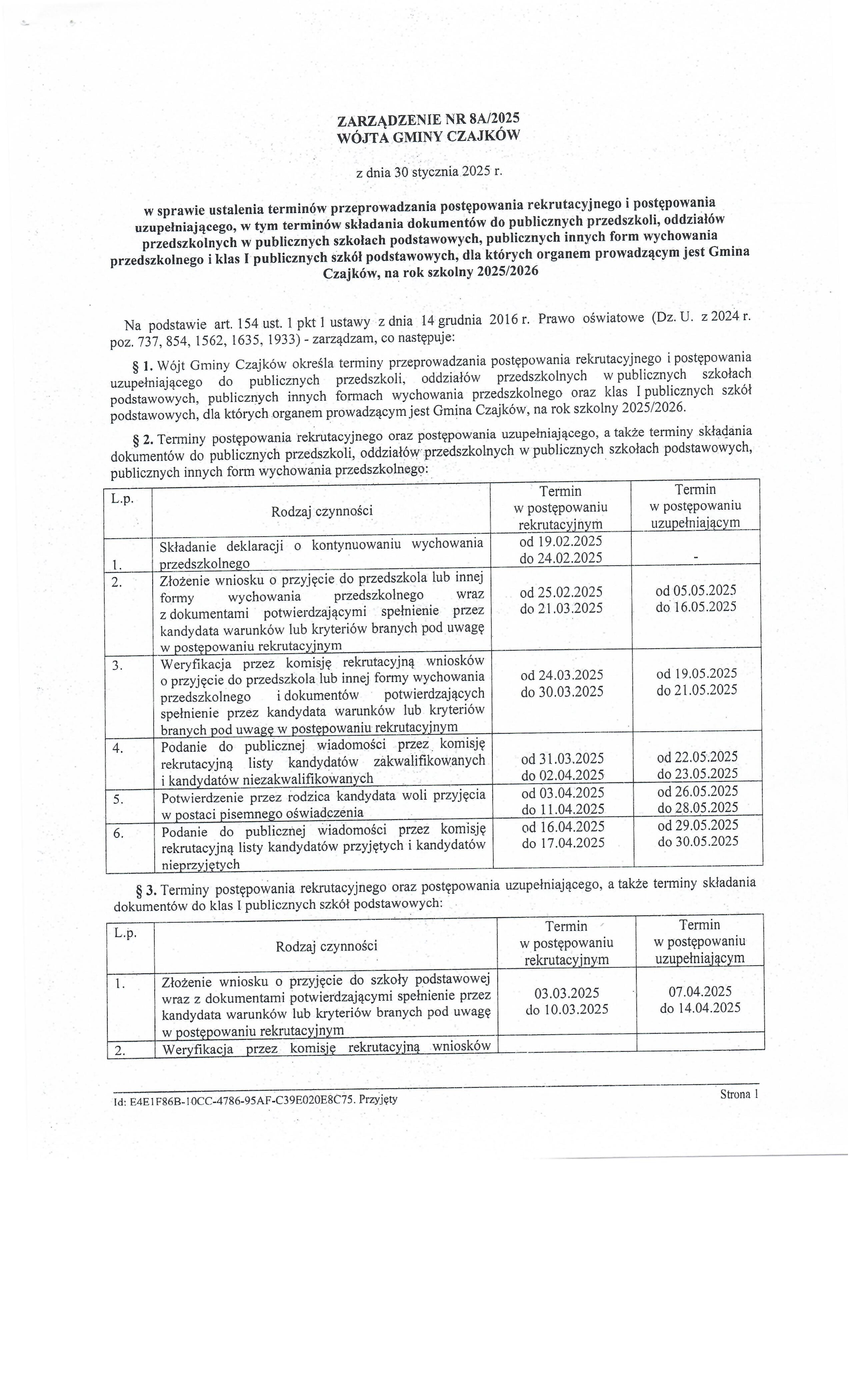 Lista dzieci przyjętych do klasy 1 (2025/2026) - aktualizacja