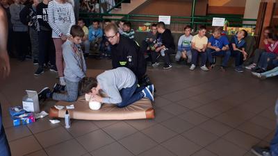 W dniu 16. października 2018r. o godzinie 11.40 odbył się pokaz udzielania Pierwszej Pomocy dla uczniów klas IV-VIIIoraz III Gimnazjum. Pokaz został przygotowany przez Ochotniczą Straż Pożarną z Czajkowa oraz Państwową Straż Pożarną z Ostrzeszowa. Ratownicy zaprezentowali jak prawidłowo udzielać Pierwszej Pomocy poszkodowanym. Kolejnym krokiem pokazu były ćwiczenia naszych uczniów. Każdy uczeń przećwiczył udzielanie pomocy poszkodowanemu. Swój mały wkład miała klasa III Gimnazjum, która zaprezentowała również w jaki sposób prawidłowo zachować się na miejscu wypadku i jak należy udzielić pomocy poszkodowanym.