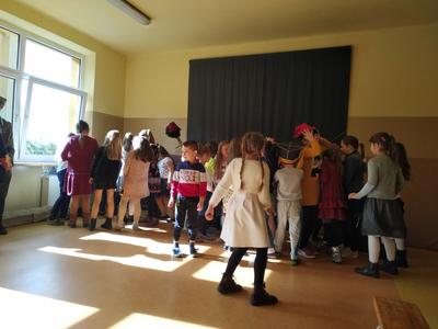 Dnia 8 marca Teatr z Krakowa udzielił uczniom naszej szkoły lekcji Historii. Uczniom bardzo się podobało, każdy mógł wziąć czynny udział w zajęciach a nawet pobawić się rekwizytami.