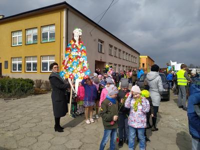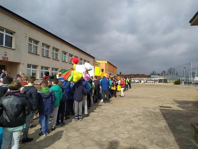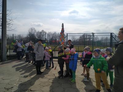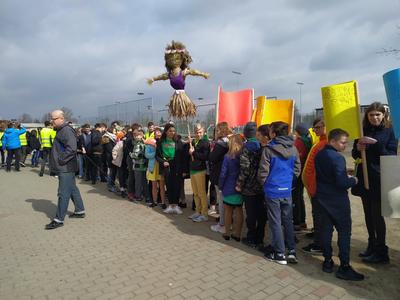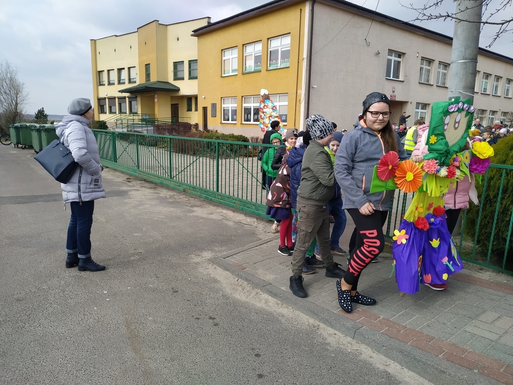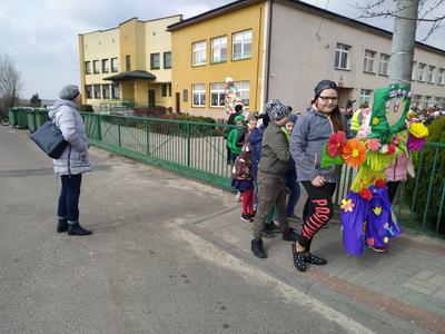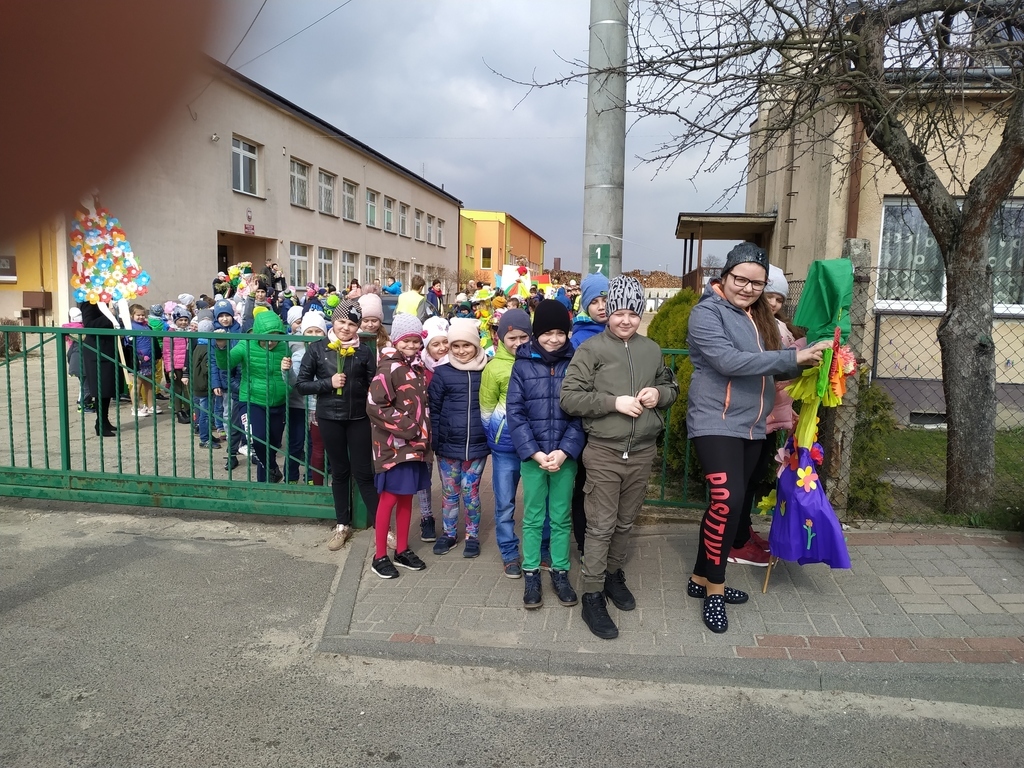 W czwartek 21 marca wszystkie Dzieci z naszej szkoły świętowały Pierwszy Dzień Wiosny. Aby podkreślić charakter tego dnia, Uczniowie przyszli ubrani na zielono i żółto. Uroczystości powitania Wiosny rozpoczęły się od konkursów, gier i zabaw związanych z tematyką pór roku. Mimo wielu atrakcji najbardziej oczekiwaną częścią dnia było wyjście na spacer, podczas którego mogliśmy pożegnać zimę i powitać wiosnę. Dzieci radośnie maszerowały w wiosennym pochodzie, na czele którego widniała Marzanna, którą następnie pożegnaliśmy według tradycji. Jesteśmy pewni, że starania naszych wspaniałych uczniów sprawią, że Wiosna zawita do nas na dobre.