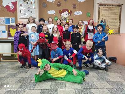 5 listopada 2021r. w naszej szkole obchodziliśmy "Dzień Postaci z Bajek". Tego dnia szkolnymi korytarzami spacerowali bohaterowie z róznych bajek. To nasi uczniowie przystrojeni w przepiękne kosiumy na jeden dzień zamienieli się w swoich ulubionych bajkowych bohaterów. Jeśli chcecie zobaczyć jak pięknie wyglądali, zerknijcie do szaej galerii.