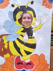była degustacja miodu oraz fotobudka przygotowana przez p. Kasię i p. Anię z grupy pięciolatków.