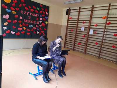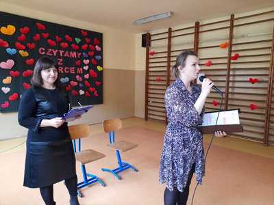 30 września klasy 1-3 obchodziły Ogólnopolski Dzień Głośnego Czytania połączony z Ogólnopolską akcją czytelniczą "Czytamy z sercem". Do najmłodszych uczniów naszej szkoły zaproszono p. Ewę Jangas, która pełni funkcję dyrektora w Publicznej Bibliotece w Czajkowie. Pani Ewa wraz z panią Izą przeczytały dzieciom "Bajkę o Lodowym Chłopcu", w której również tematem przewodnim było serce. Po wysłuchaniu bajki uczniowie otrzymali karteczki z serduszkami zachęcające do codziennego czytania. Po wykonaniu zadania na dzieci czeka mała niespodzianka w bibliotece szkolnej.
