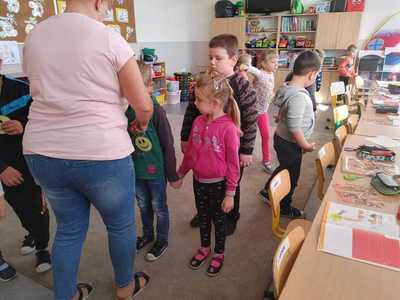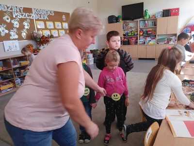 Dzieci bardzo chętnie uczestniczyły w zajęciach a uśmiech z ich twarzy nie znikał. Uśmiechajmy się na co dzień, gdyż z uśmiechem każdemu do twarzy.