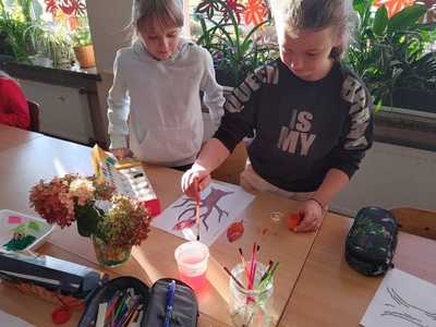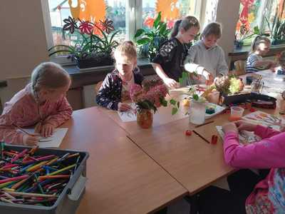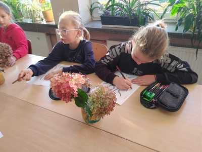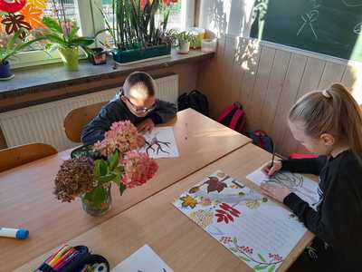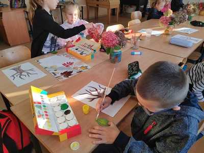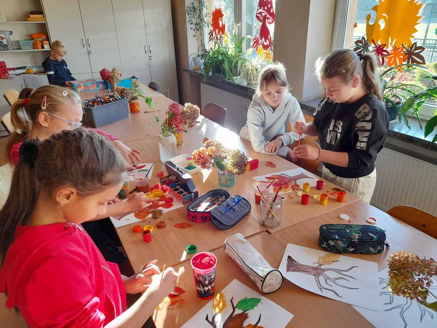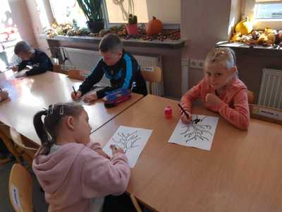 Uczniowie naszej szkoły podczas zajęć w świetlicy szkolnej stworzyli prace plastyczne z pięknymi jesiennymi drzewami, które ozdobiły wnętrze świetlicowej pracowni. Grupa „O” również nie zapomniała o Światowym Dniu Drzewa. Najmłodsze dzieci wykonały liczne prace plastyczne. Nie zabrakło również praktycznej części sadzenia drzewek w doniczkach. Każdy mały "ogrodnik" otrzymał dyplom aktywnego uczestnictwa w zajęciach zorganizowanych z tej właśnie okazji. Obchodzenie „świąt nietypowych” jest dla naszych uczniów wspaniałą przygodą, nauką i zabawą.