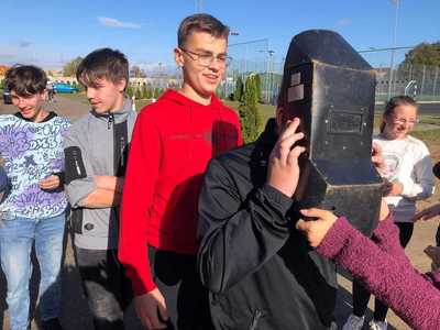 Częściowe zaćmienie Słońca miało miejsce we wtorek 25 października. Mimo zachmurzonego nieba, zjawisko było widoczne w wielu miejscach Polski. Nie zmieniła się jasność nieba, natomiast można było dostrzec wyraźne, głębokie przesłonięcie tarczy słonecznej przez Księżyc. Okazję do obserwacji mieli też mieszkańcy innych, nie tylko europejskich krajów. Zgodnie z zapowiedziami, zaćmienie trwało w Polsce od około godziny 11.15 do około 13.30, a jego maksimum wystąpiło między 12.15 a 12.30. To, kiedy dokładnie zaczęło się zjawisko, zależało od miejsca. Uczniowie naszej szkoły na przerwie uważnie obserwowali zaćmienie Słońca przez specjalne szkiełko spawalnicze.