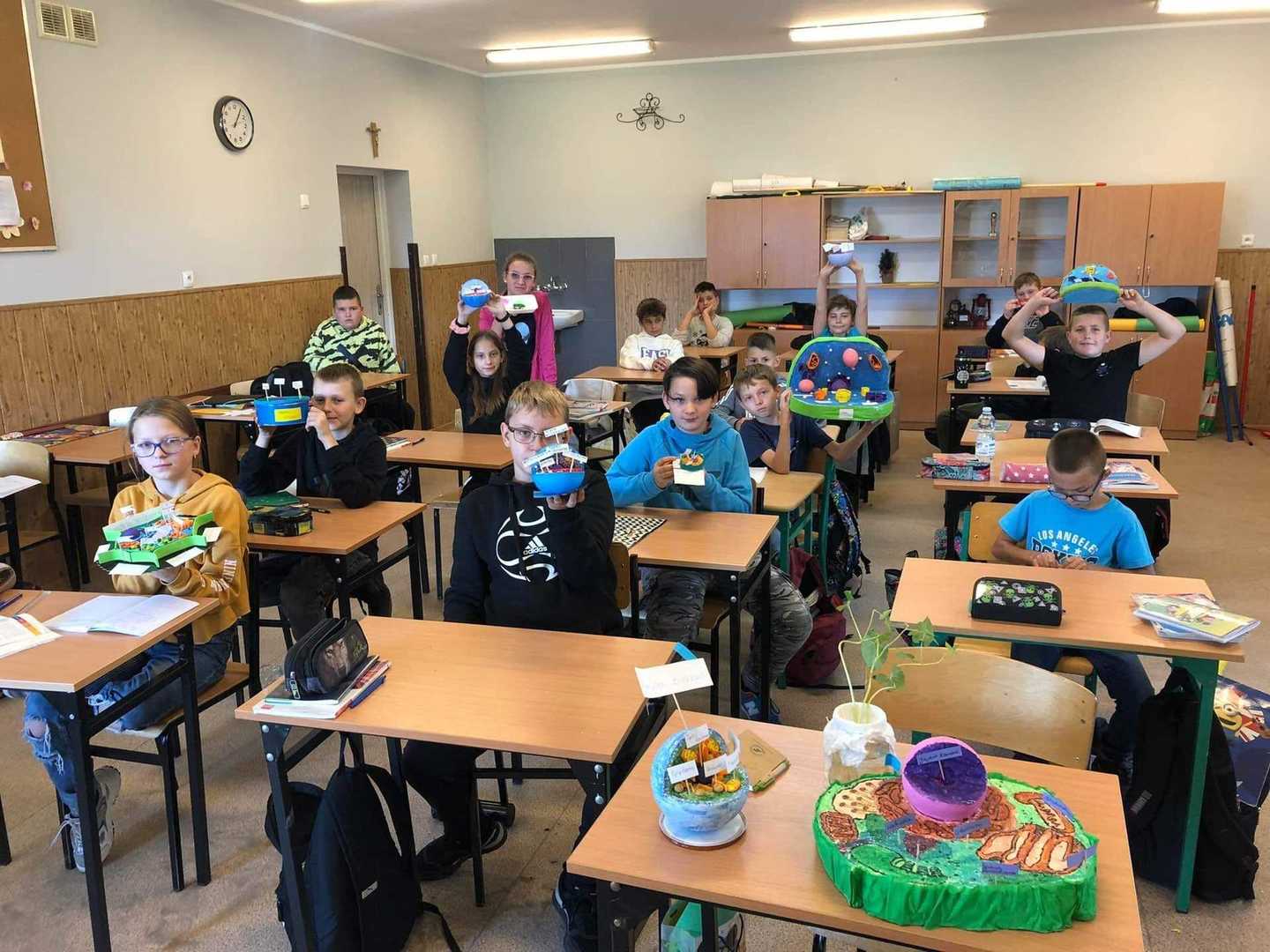 Uczniowie klasy V, w ramach zajęć z biologii, wykonali modele budowy komórki roślinnej, zwierzęcej i bakteryjnej. Wszyscy wykazali się wielką kreatywnością. Do wykonania modeli wykorzystali różne materiały. Wykonane prace przyciągają wzrok kolorami i kształtami oraz zadziwiają precyzją wykonania.