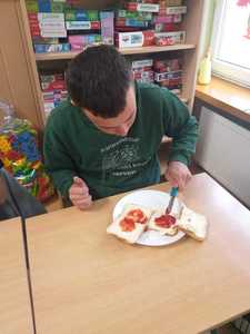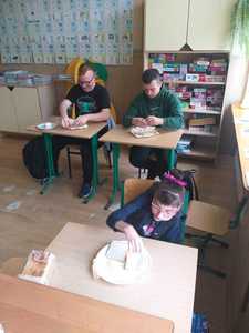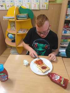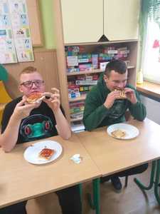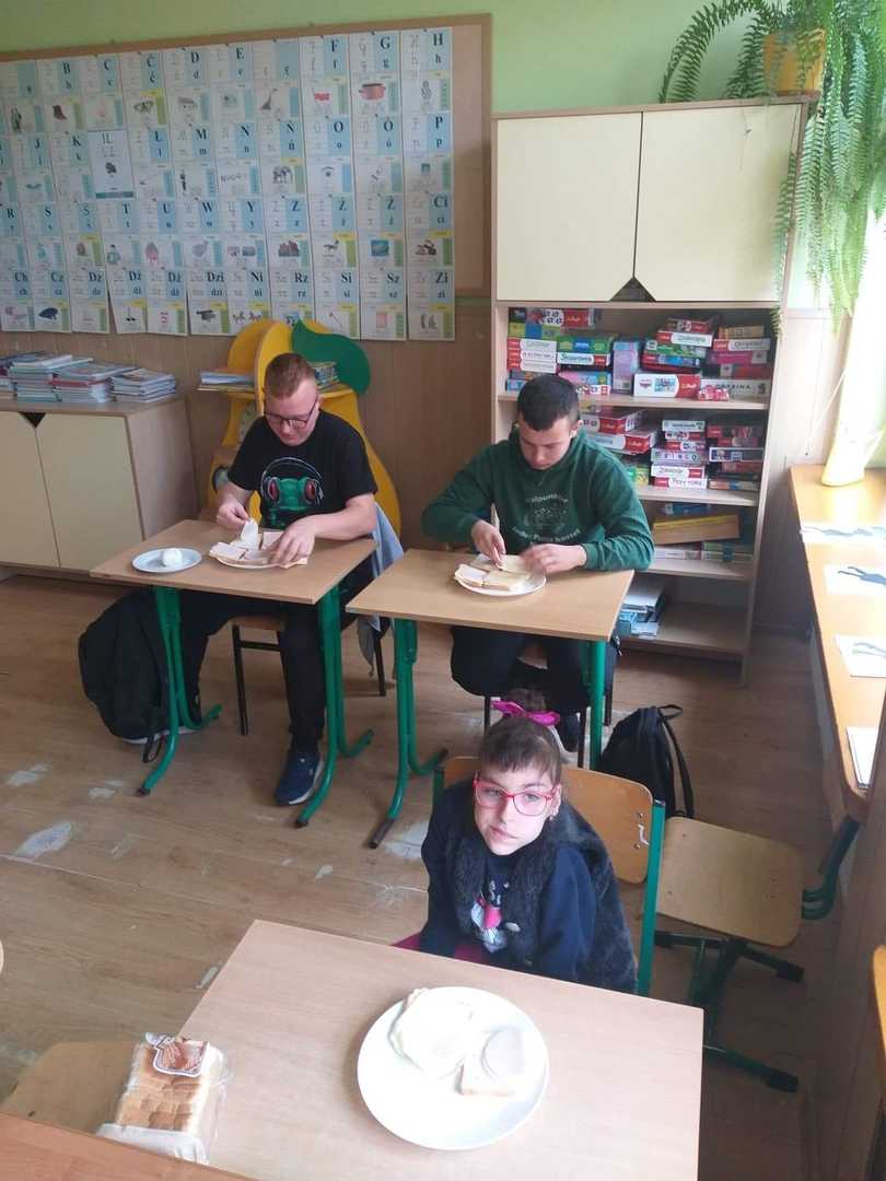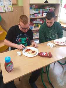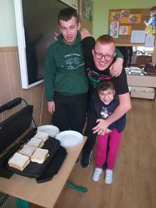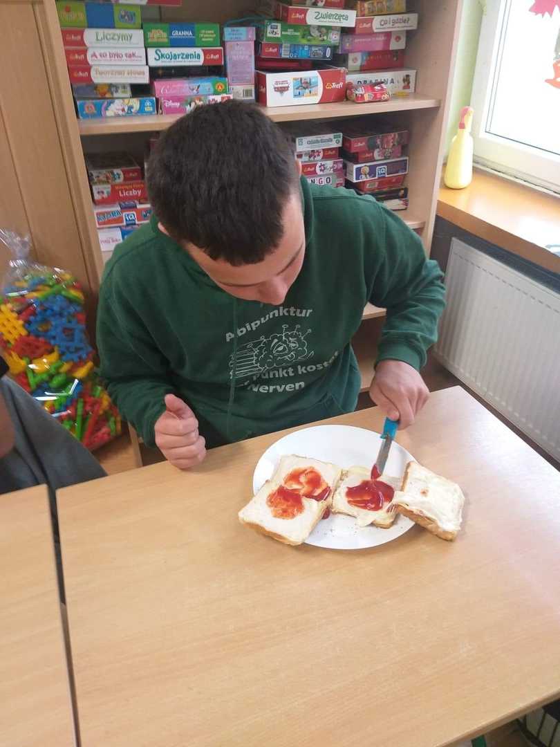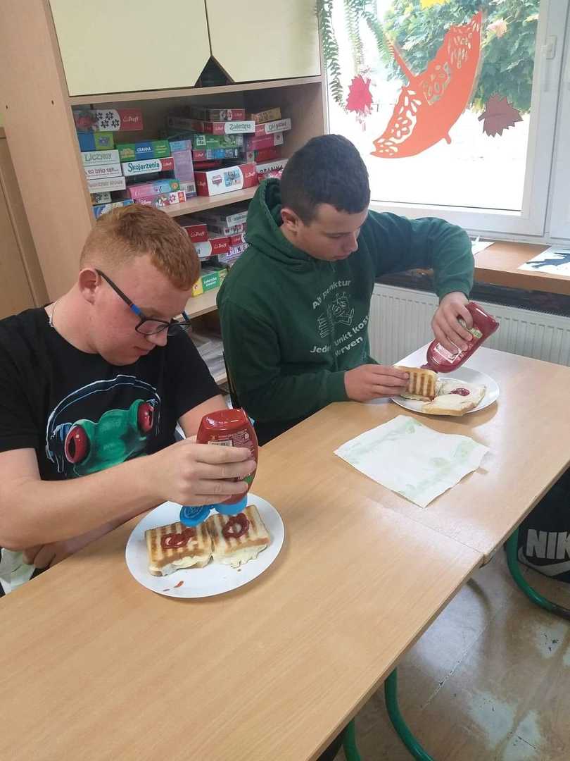 Własnoręcznie przygotowany posiłek smakuje najlepiej Przekonali się o tym: Oliwka, Dawid i Maciej. Drugie śniadanie jest również bardzo ważnym posiłkiem, dlatego w ubiegły piątek uczniowie samodzielnie przygotowali tosty z serem i ketchupem.