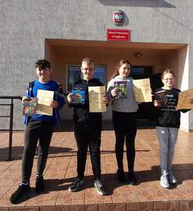 W ubiegłym tygodniu podczas szkolnego apelu wręczono dyplomy i nagrody książkowe zwycięzcom konkursu plastycznego pt. "Ilustracja z mojej ulubionej książki" oraz konkursu " Wiedzy o Janie Pawle II". Wszystkim składamy serdeczne gratulacje i życzymy dalszych sukcesów