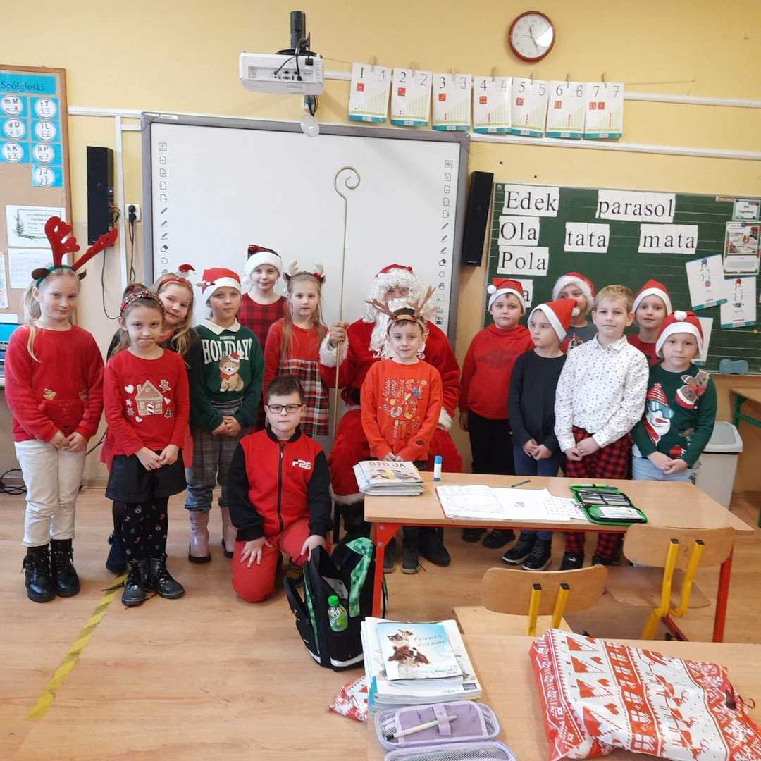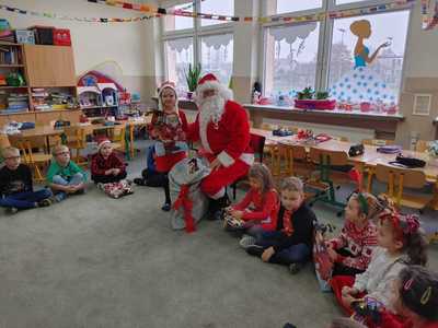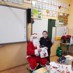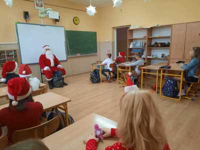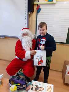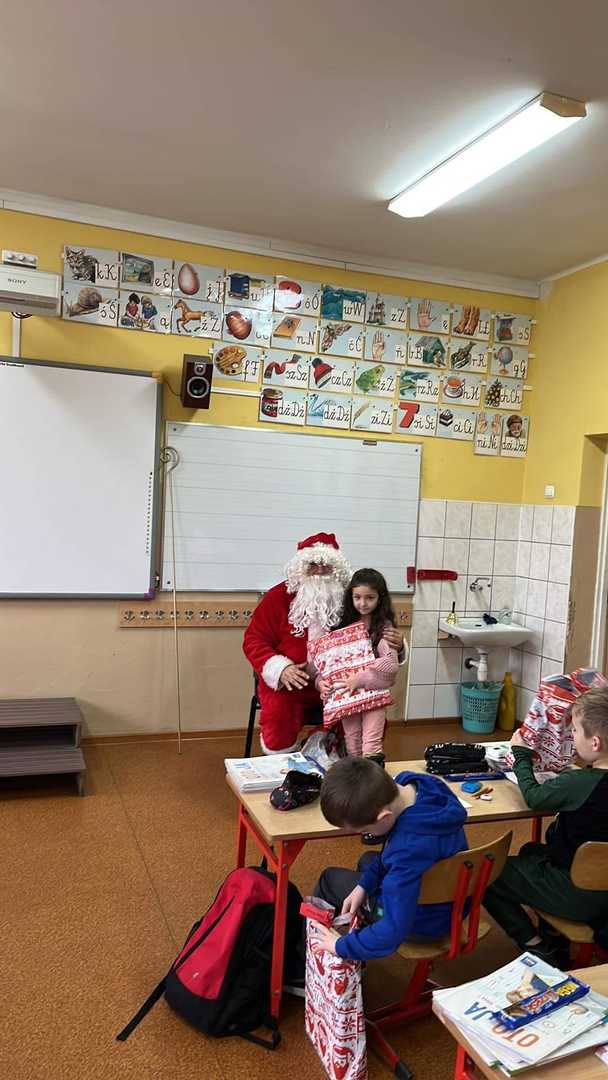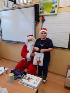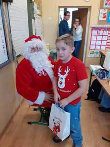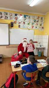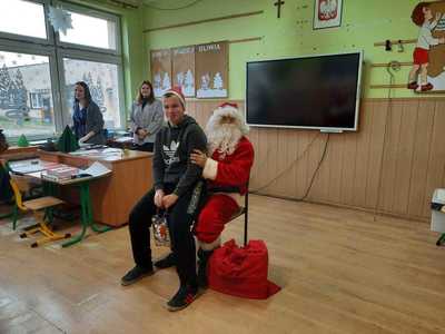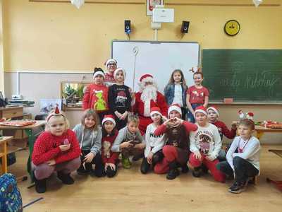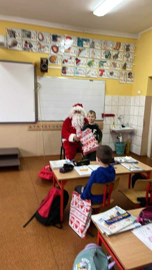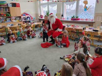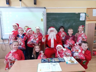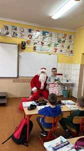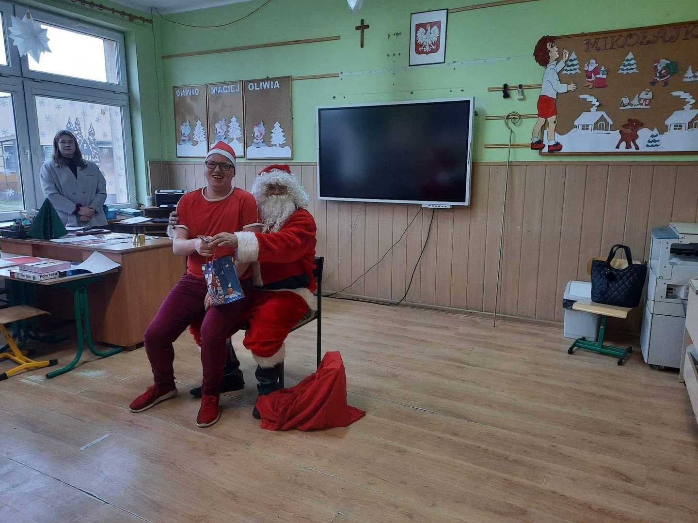 Święty Mikołaj w naszej szkole. Na ten dzień ze szczególną niecierpliwością czekały najmłodsze dzieci, czyli zerówka i uczniowie klas I – III a także uczniowie z oddziału terapeutyczno-edukacyjnego. Cóż to była za radość i jakie emocje