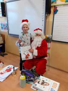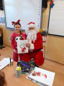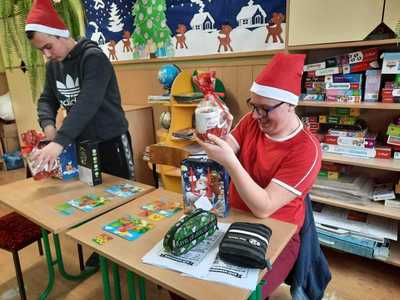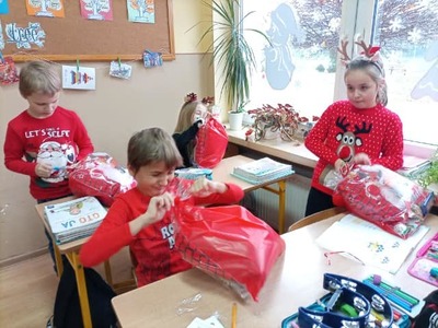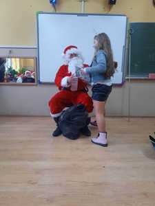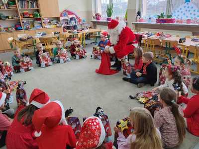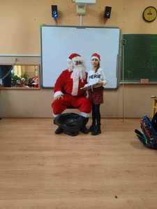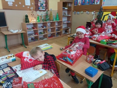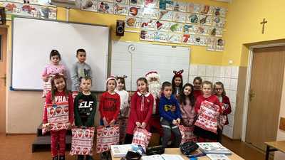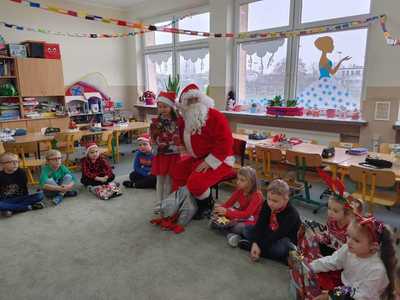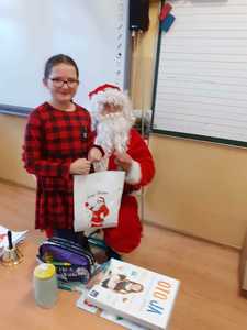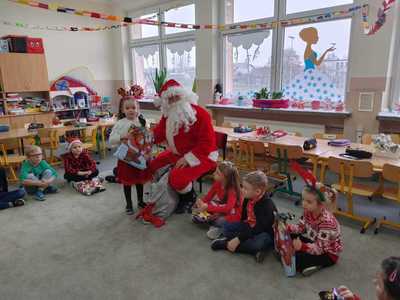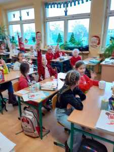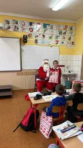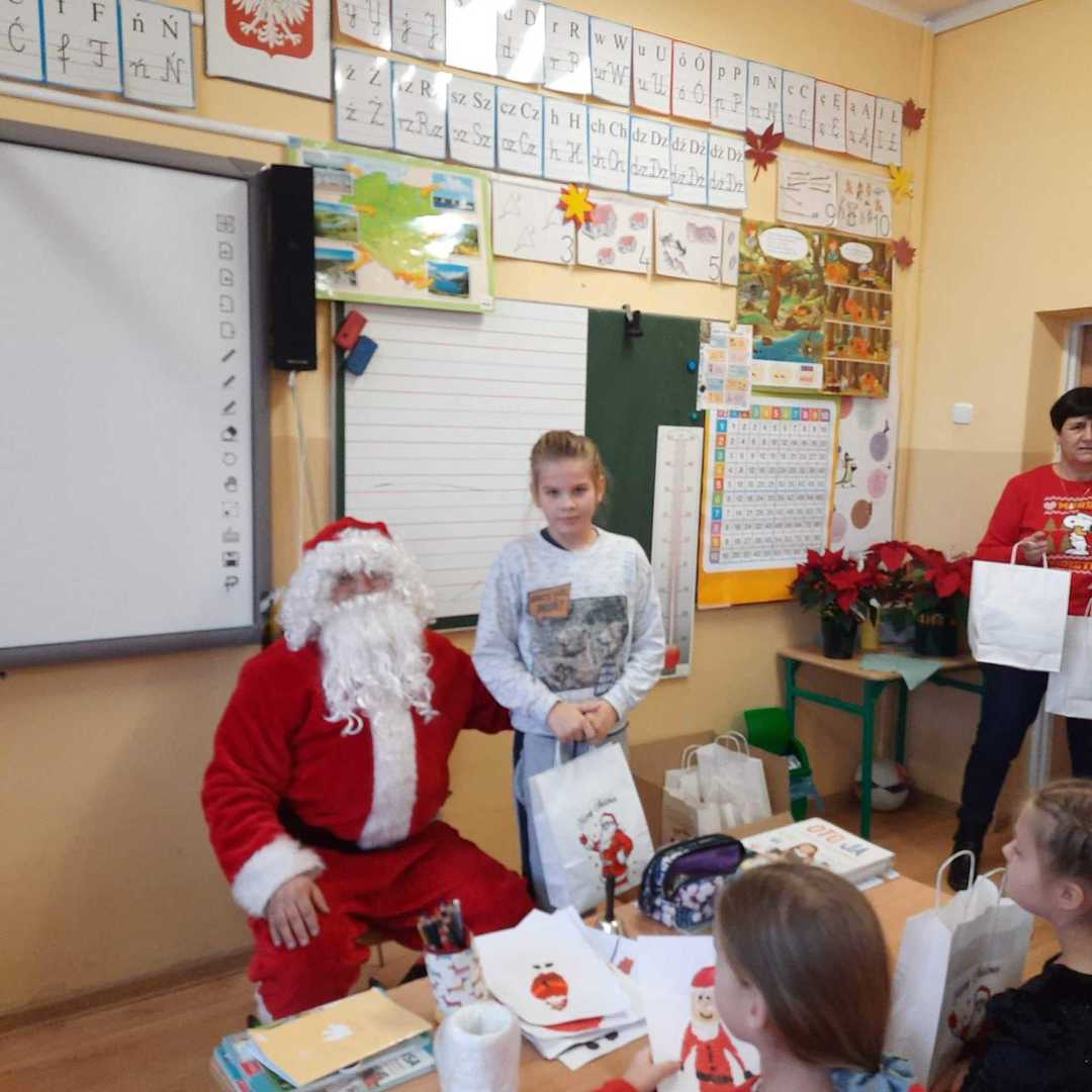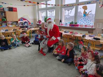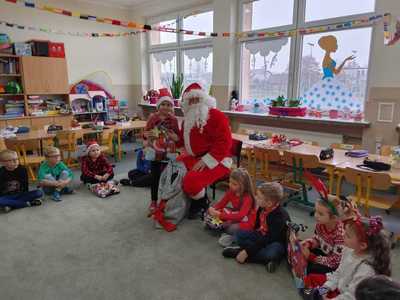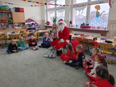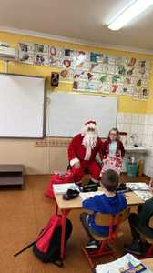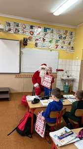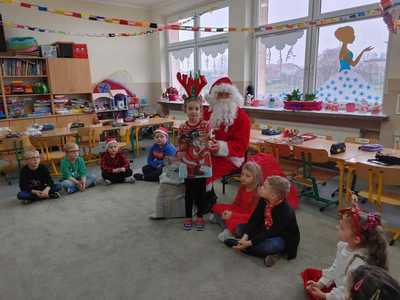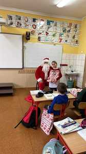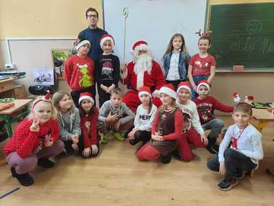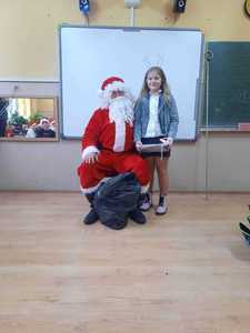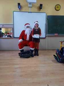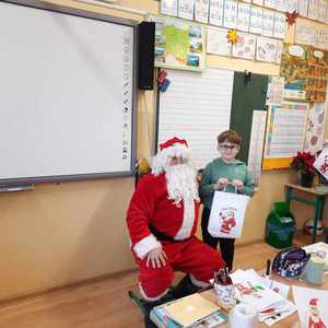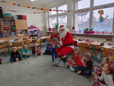 Święty Mikołaj w naszej szkole. Na ten dzień ze szczególną niecierpliwością czekały najmłodsze dzieci, czyli zerówka i uczniowie klas I – III a także uczniowie z oddziału terapeutyczno-edukacyjnego. Cóż to była za radość i jakie emocje