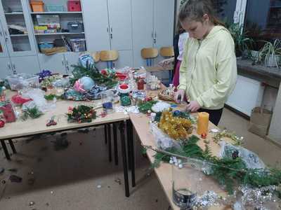 1 I 8 grudnia w naszej szkole odbyły się warsztaty świąteczne, których efekty mogliśmy podziwiać na kiermaszu w ubiegłą niedzielę (11.12.2022r.). Gośćmi specjalnymi na warsztatach były: Pani Agnieszka Zadka - krawcowa oraz florystka Pani Danuta Nowak, które wraz dziećmi przygotowywały świąteczne stroiki, szyły poduszki i inne piękne Bożonarodzeniowe ozdoby. Serdecznie dziękujemy za poświęcony czas i ogromne zaangażowanie