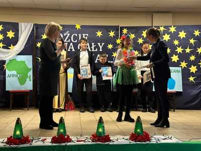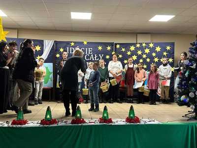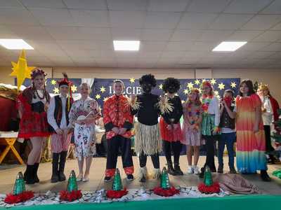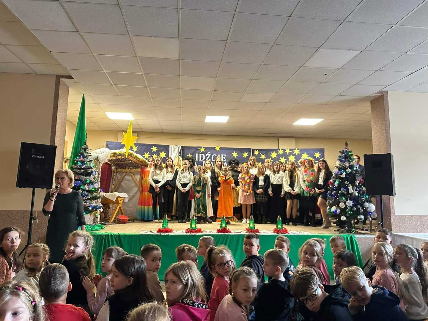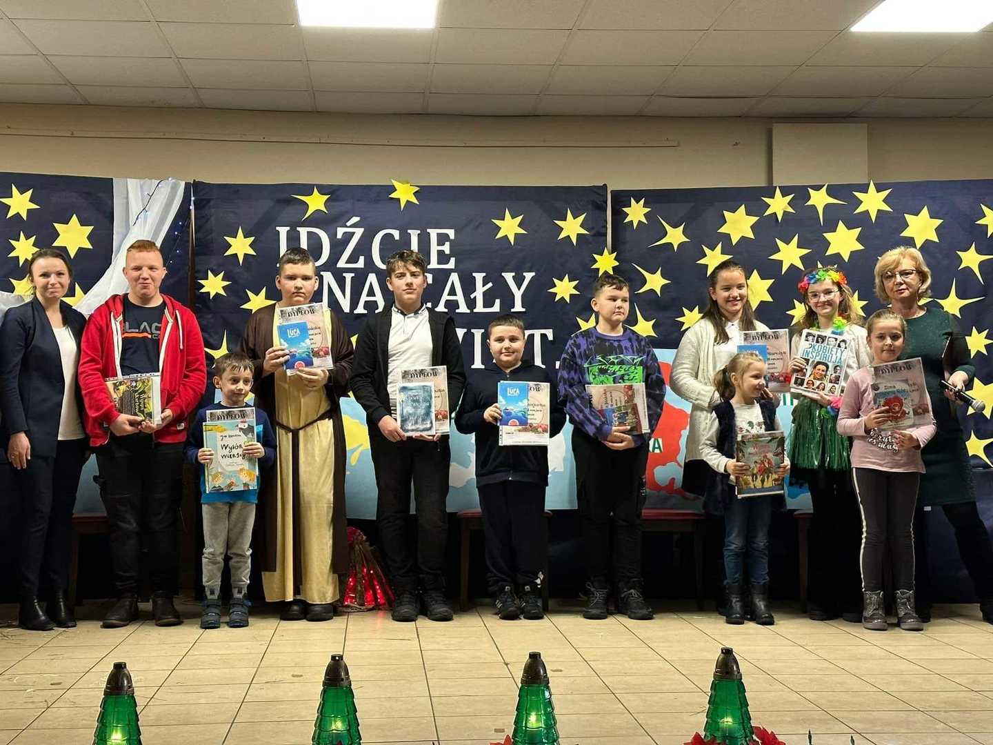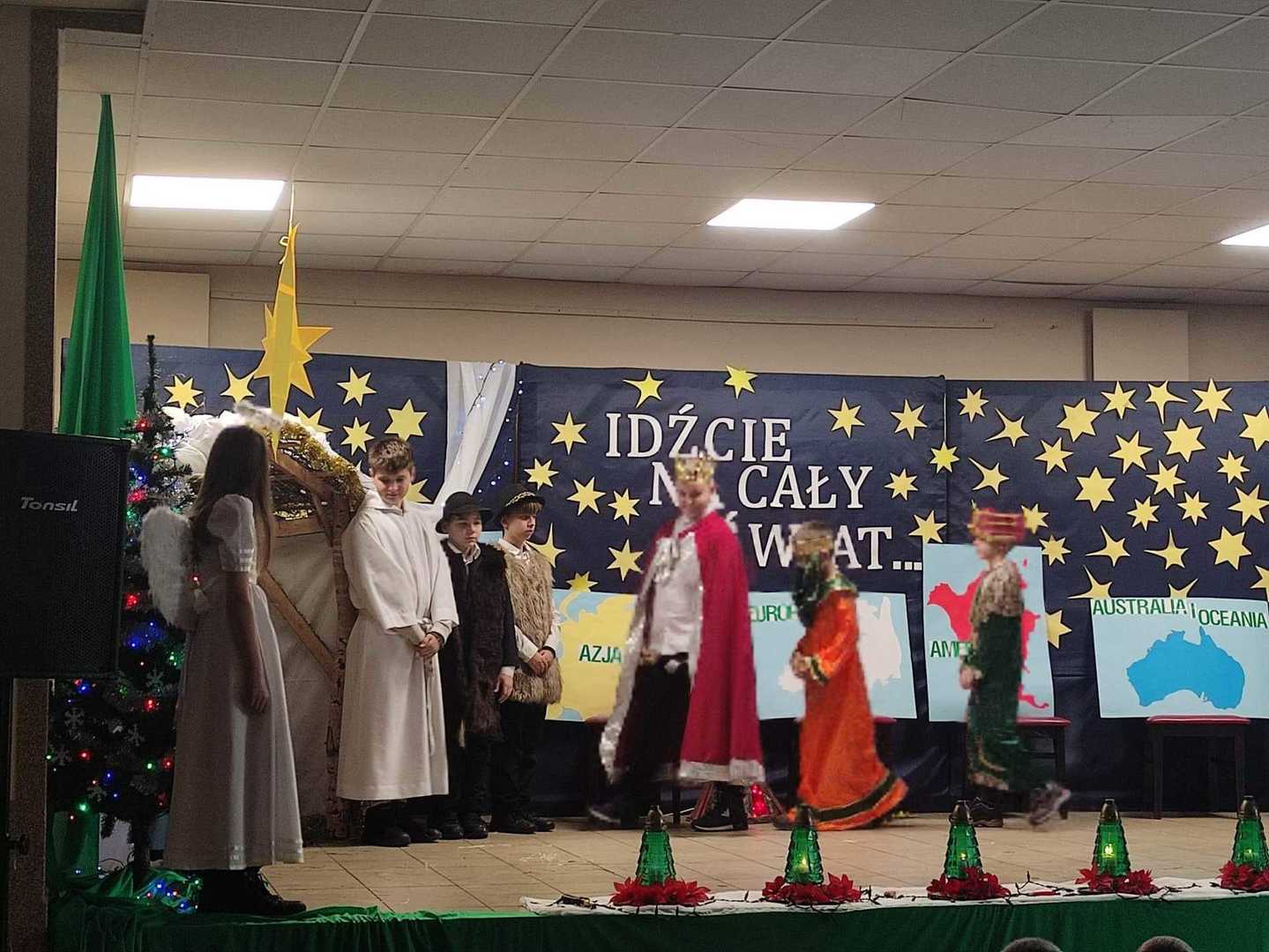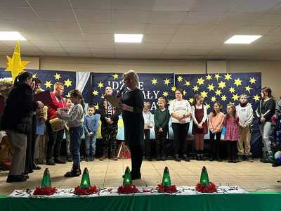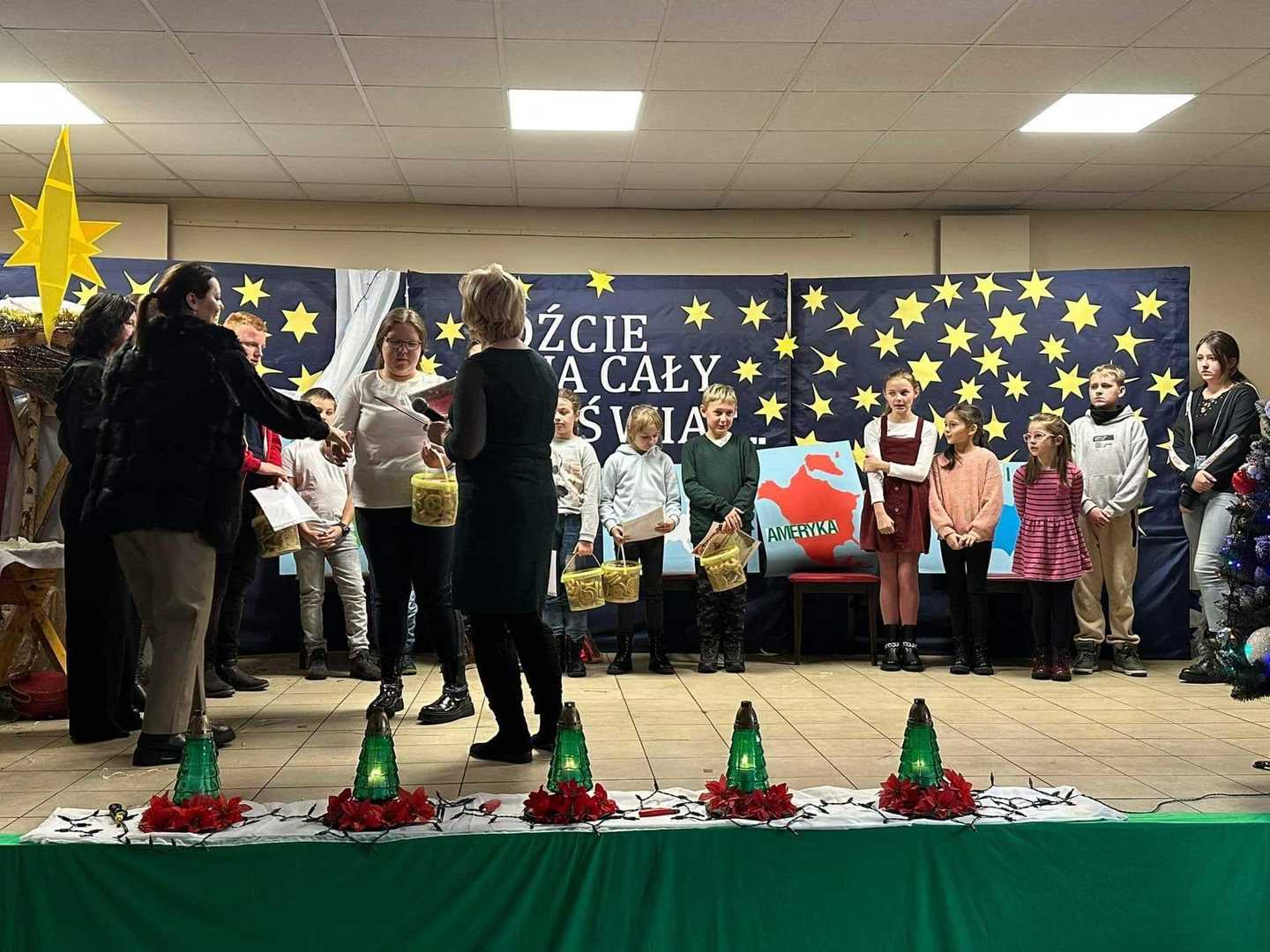 W świąteczny klimat wprowadziło nas przedstawienie Jasełek przygotowanych przez uczniów klasy 5 pod kierunkiem p. Sławomira Machaja i p. Izabeli Tomali. Po wysłuchaniu części artystycznej Pani Wicedyrektor ogłosiła wyniki konkursów związanych ze świętami Bożego Narodzenia zorganizowanych w naszej szkole.
