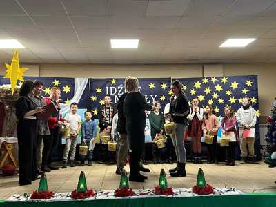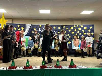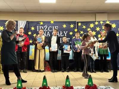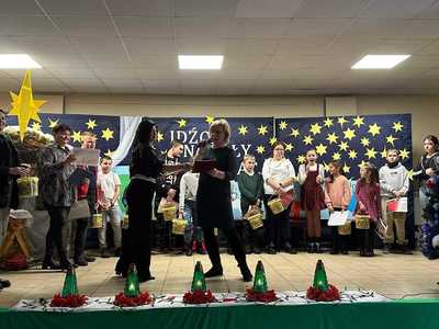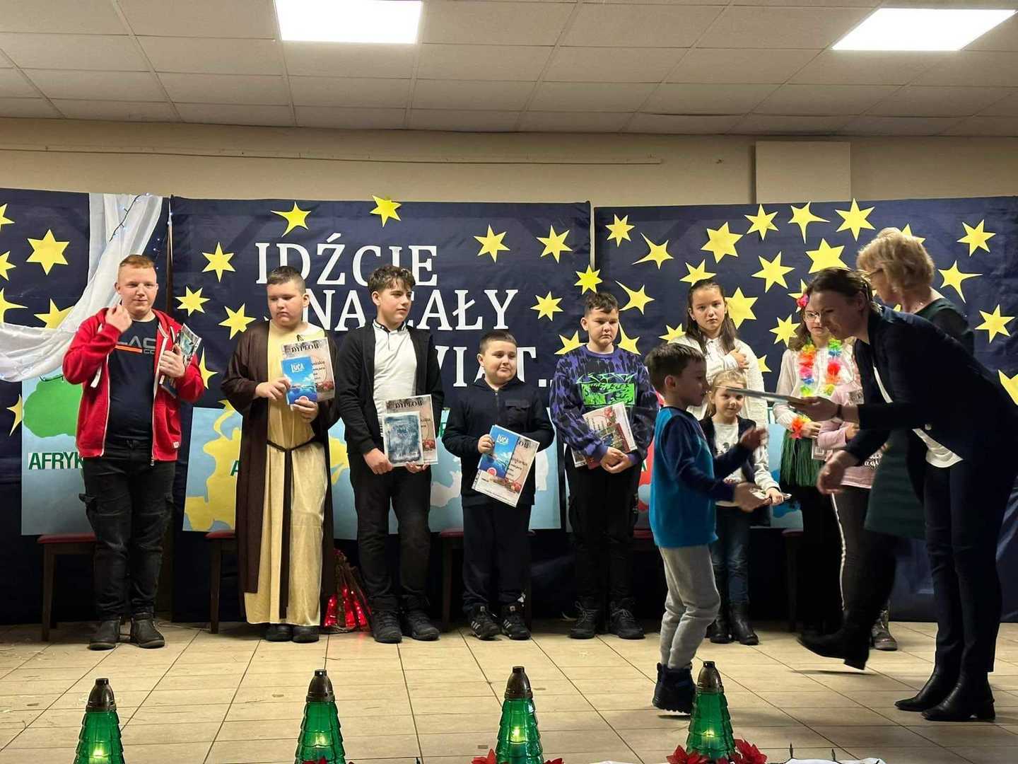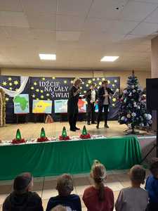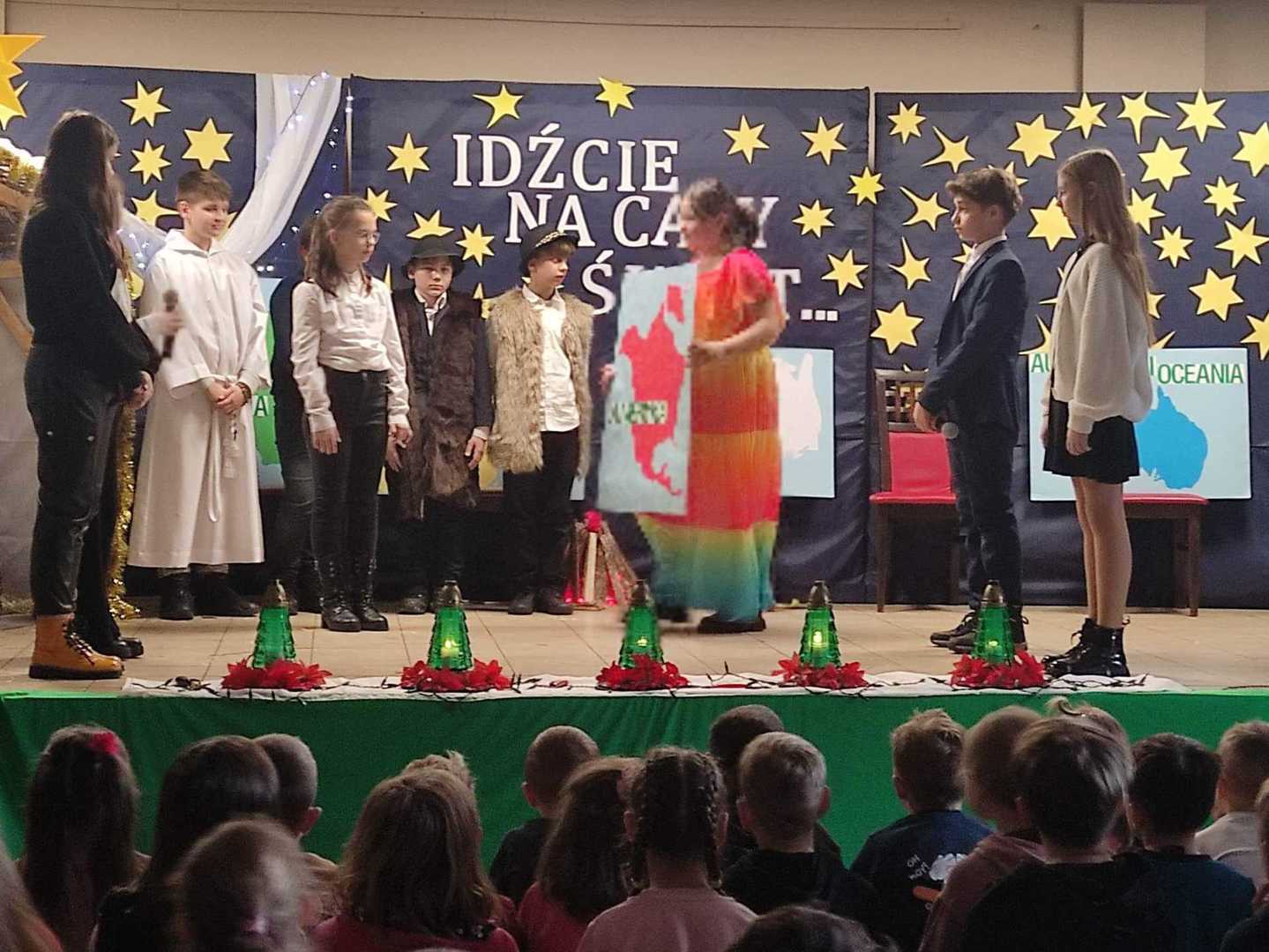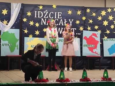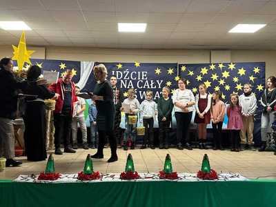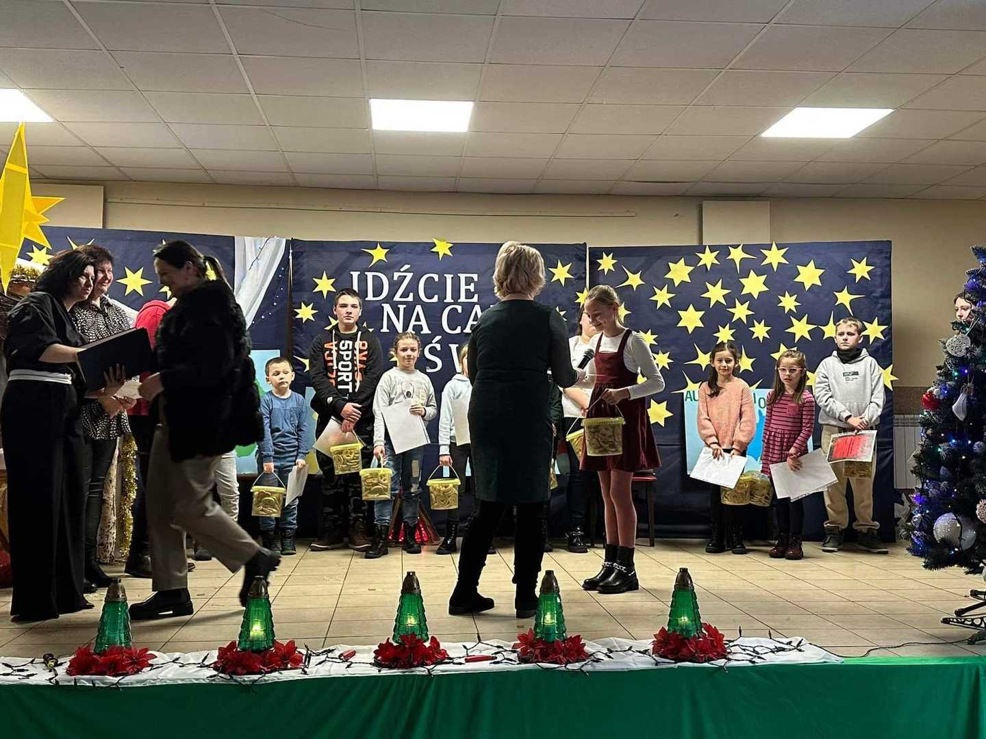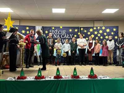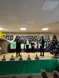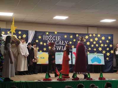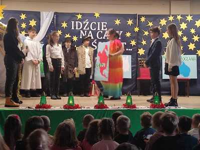 W świąteczny klimat wprowadziło nas przedstawienie Jasełek przygotowanych przez uczniów klasy 5 pod kierunkiem p. Sławomira Machaja i p. Izabeli Tomali. Po wysłuchaniu części artystycznej Pani Wicedyrektor ogłosiła wyniki konkursów związanych ze świętami Bożego Narodzenia zorganizowanych w naszej szkole.
