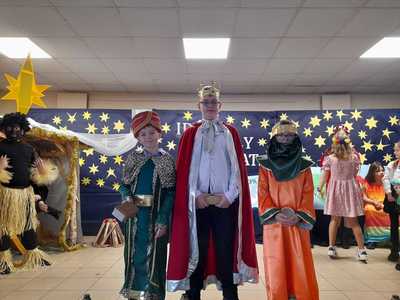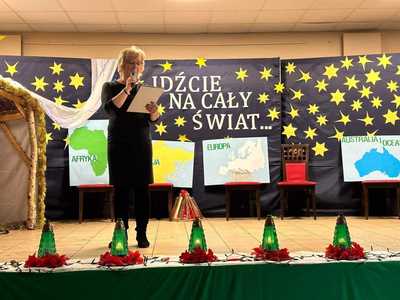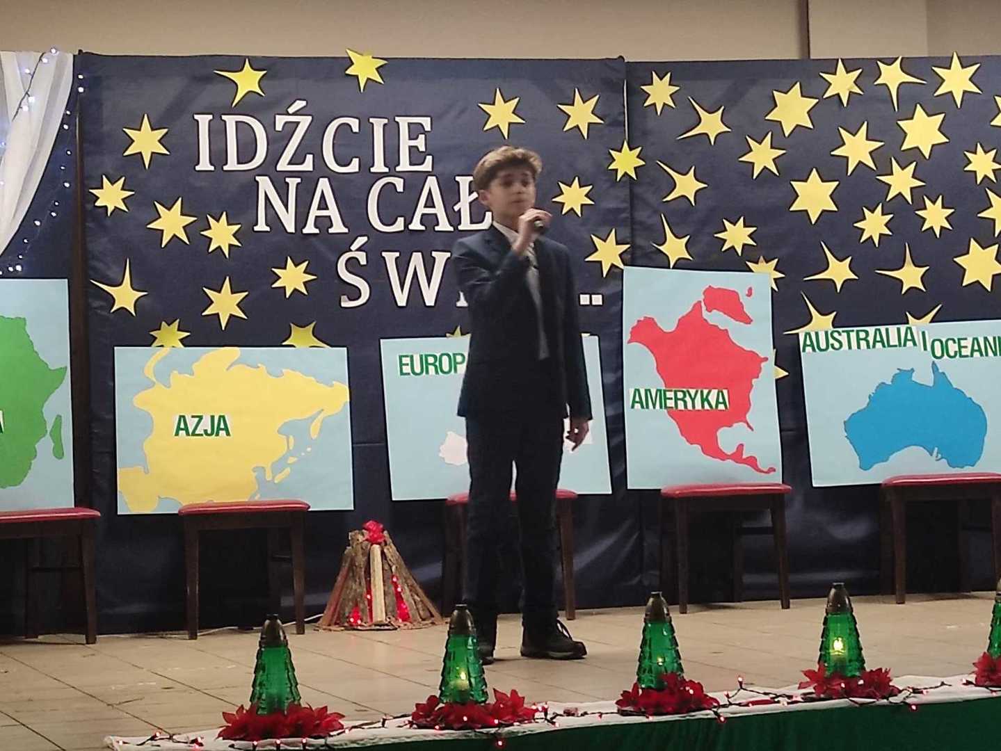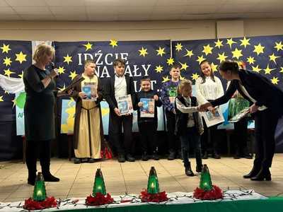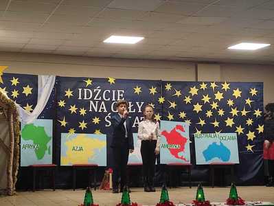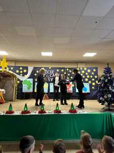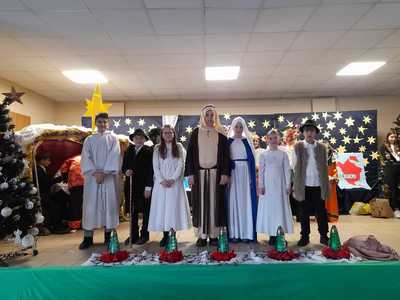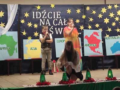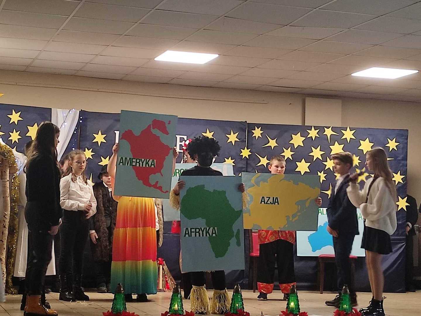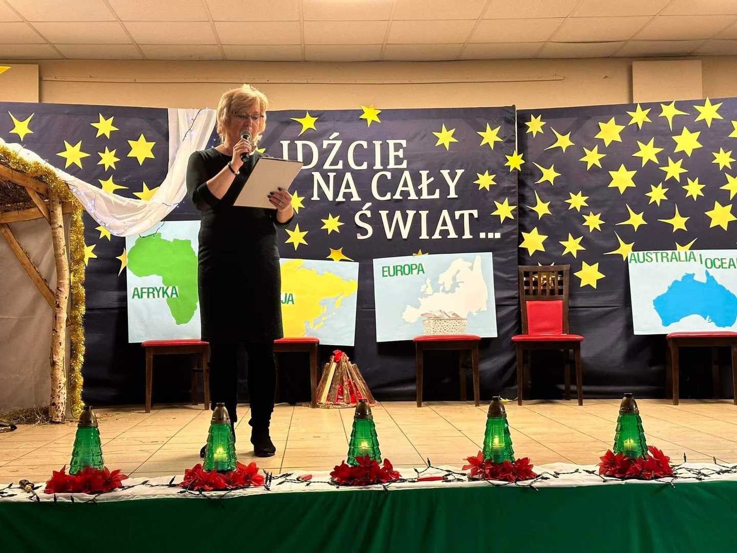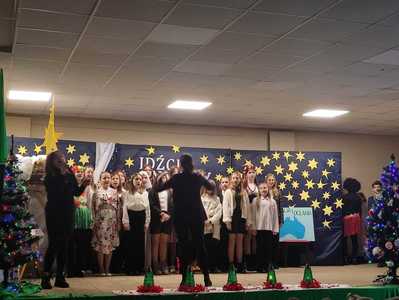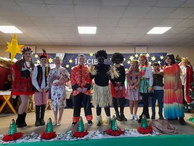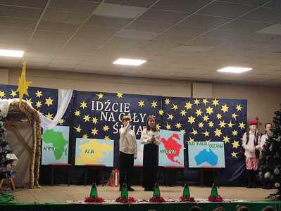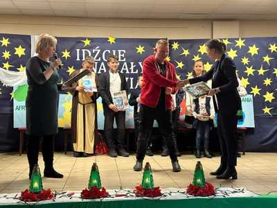 W świąteczny klimat wprowadziło nas przedstawienie Jasełek przygotowanych przez uczniów klasy 5 pod kierunkiem p. Sławomira Machaja i p. Izabeli Tomali. Po wysłuchaniu części artystycznej Pani Wicedyrektor ogłosiła wyniki konkursów związanych ze świętami Bożego Narodzenia zorganizowanych w naszej szkole.