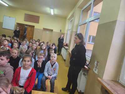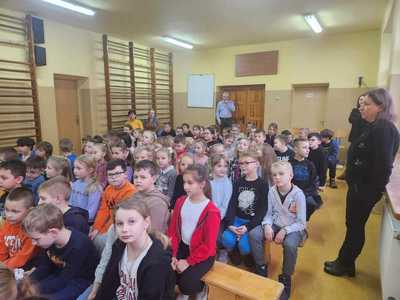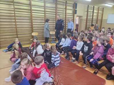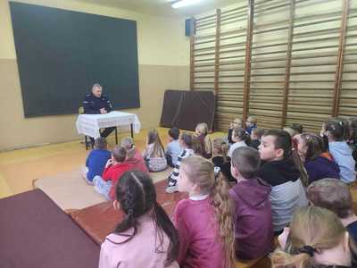 Dbając o bezpieczeństwo naszych uczniów w czasie zbliżających się ferii zimowych, 19.01.2023r. odbyły się spotkania profilaktyczno-edukacyjne z funkcjonariuszem policji z podziałem na grupy wiekowe: dla uczniów kl. 0-III oraz IV-VIII. Podczas prelekcji dzielnicowy gminy Czajków, p.Grzegorz Ditfeld, przypomniał o zagrożeniach mogących pojawić się w trakcie ferii.