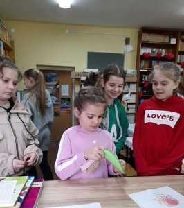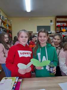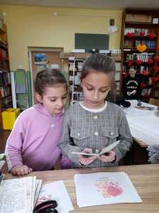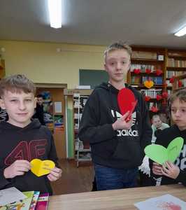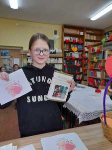 na którym zamieszczony był tytuł książki – niespodzianki. Każdy uczeń, który wypożyczył dziś książkę otrzymał walentynkę dla miłośnika książek, na której widniały najsłynniejsze cytaty o miłości. Cóż – albo nasi uczniowie spędzą niezapomniany wieczór z fascynującą lekturą, albo stwierdzą, że to jednak nie to i spróbują kolejny raz…