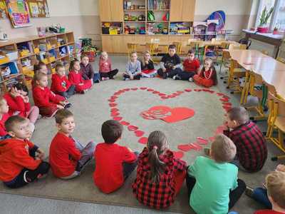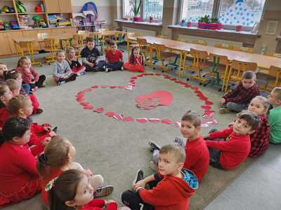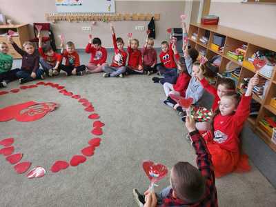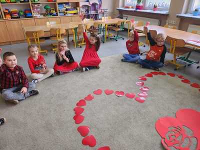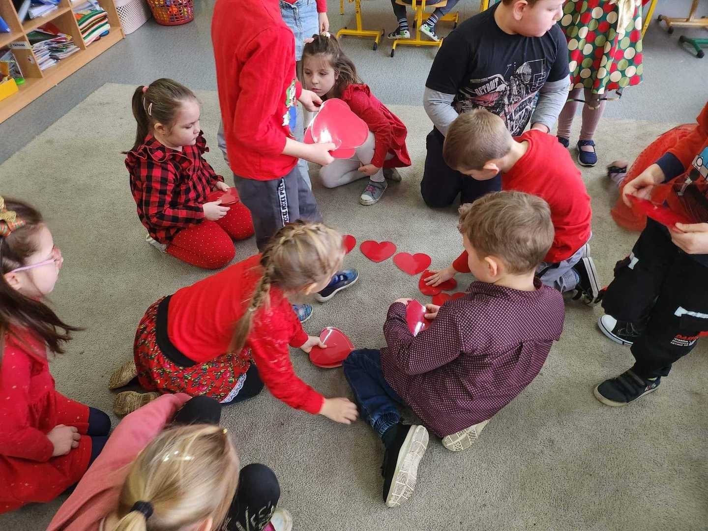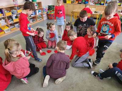Odbyły się plastyczne zabawy walentynkowe. W tym wyjątkowym dniu dominował kolor czerwony.