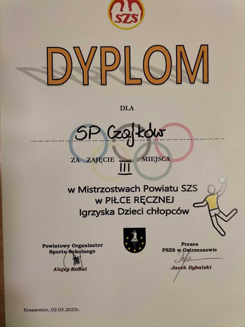 02.03.2023 w SP w Kraszewicach odbyły się Mistrzostwa Powiatu w Piłce Ręcznej Chłopców kl. V-VI. Drużyna z naszej szkoły zajęła 3 miejsce.