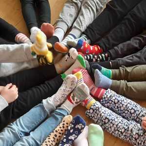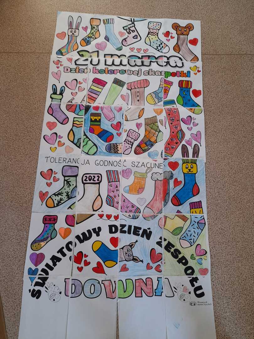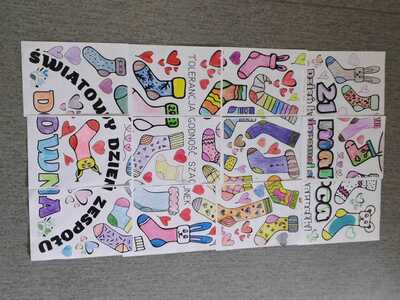 Symbolem Zespołu Downa są kolorowe skarpetki będące synonimem niedopasowania społecznego i genotypowego z jakim borykają się osoby z zespołem Downa.
