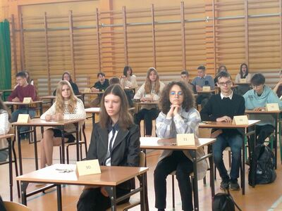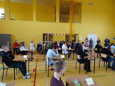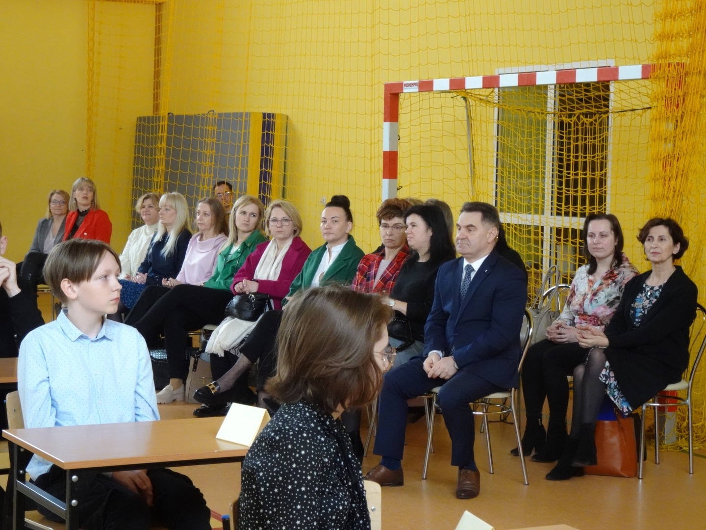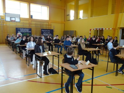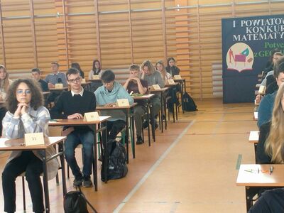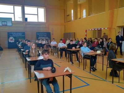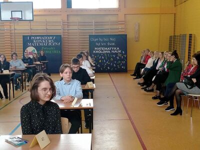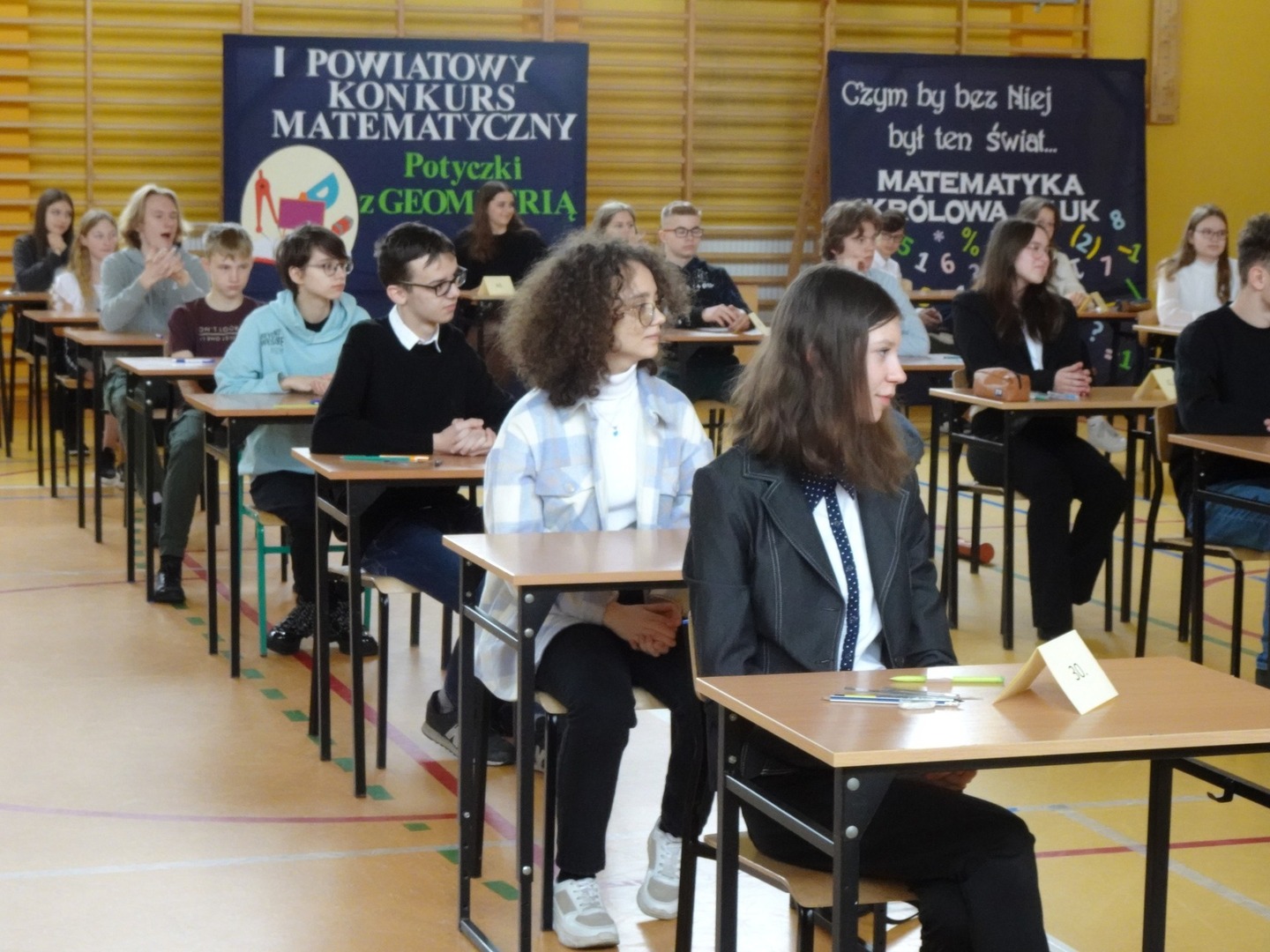 Dzisiaj w naszej szkole odbył się I POWIATOWY KONKURS MATEMATYCZNY pt. „POTYCZKI Z GEOMETRIĄ” dla uczniów klas 7-8.