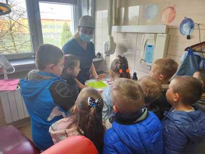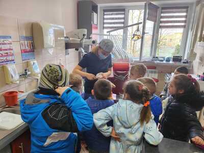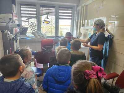 30 marca sześciolatki wybrały się na wycieczkę do gabinetu stomatologicznego p. Moniki Janas-Włodarczyk w Czajkowie.