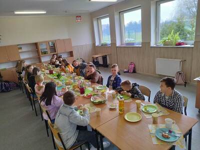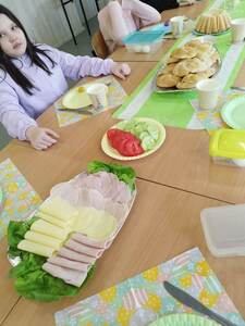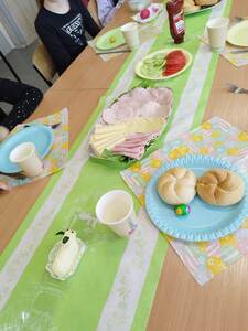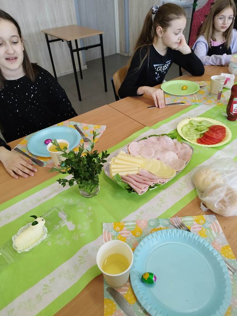 5 kwietnia uczniowie klay IV, realizując założenia projektu "Trzymaj Formę", przygotowali zdrowe wielkanocne śniadanko. Na kolorowych talerzach nie zabrakło pieczywa, warzyw 🍅🥒, wędlin i oczywiście pysznych serów🧀. Tradycyjnie na świąteczym stole znalazł się również baranek z masła, jajka oraz domowa babka. Wszyscy ze smakiem zjedli przygotowane przez siebie zdrowe kanapki.