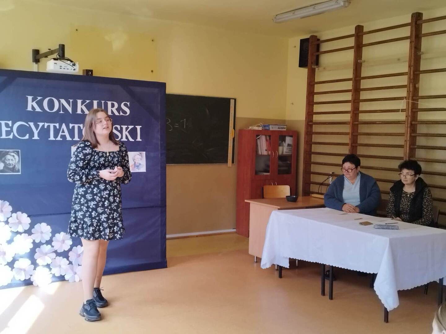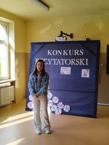 13 kwietnia 2023r. w naszej szkole odbył się konkurs recytatorski "Niektórzy lubią poezję". Wydarzenie związane było z udziałem szkoły w projekcie MISTRZYNI SZYMBORSKA. Wisława Szymborska jest jedną z patronek trwającego roku, dlatego to właśnie wiersze jej autorstwa recytowali uczniowie klas 4-8. Wszyscy uczestnicy konkursu swoim wykonaniem oddali hołd wielkiej poetce. Sposród 12 recytatorów wyłoniono zwycięzców, którzy otrzymali nagrody książkowe. Wszyscy otrzymali pamiątkowe dyplomy, słowa uznania od jury i gromkie brawa od publiczności.