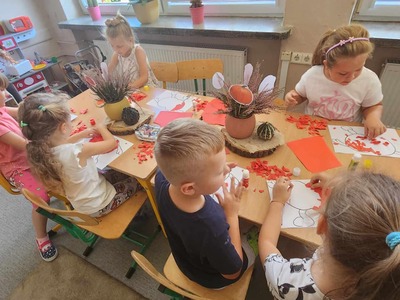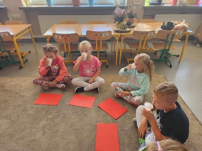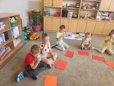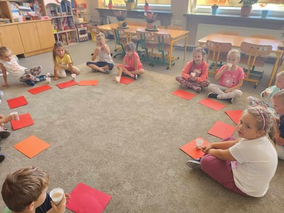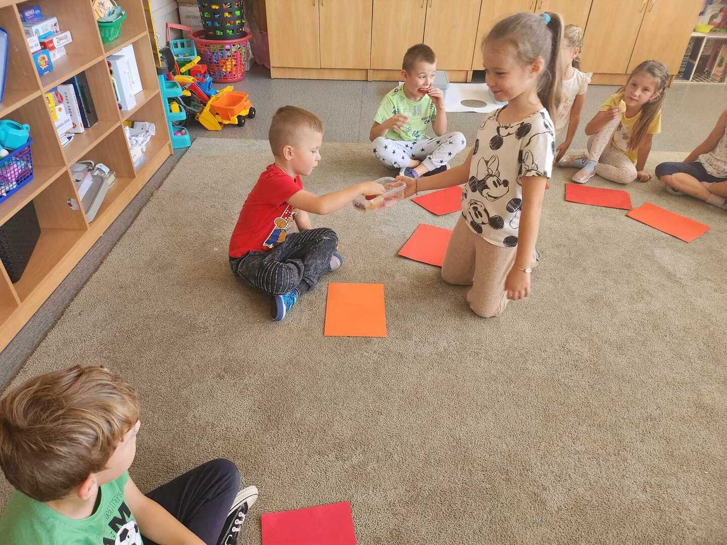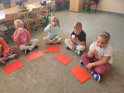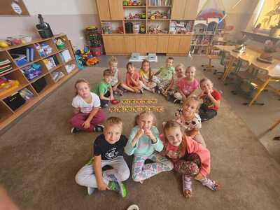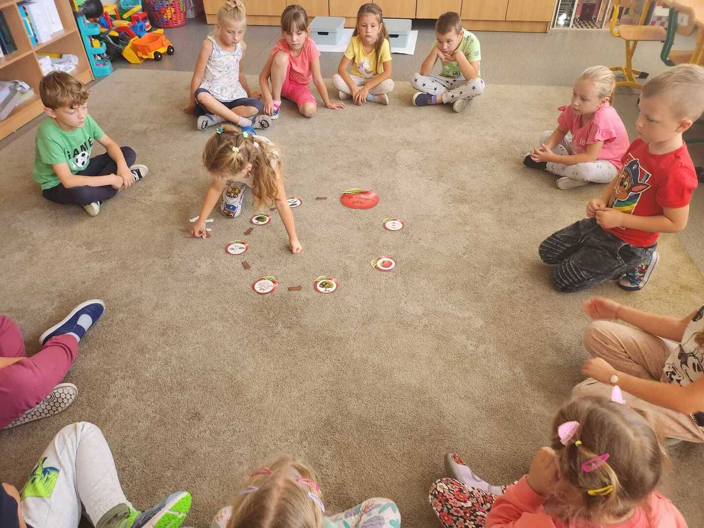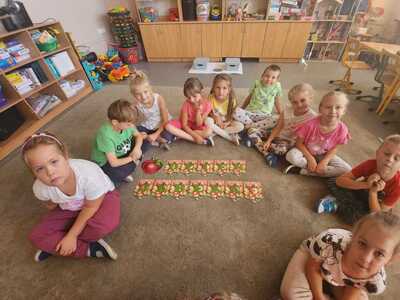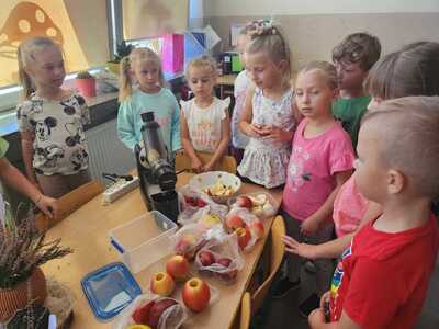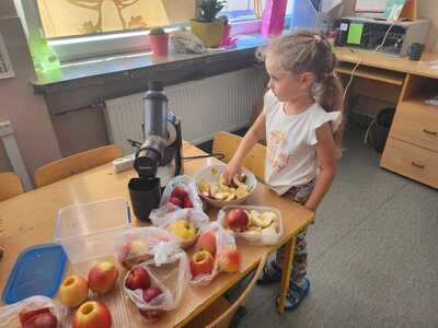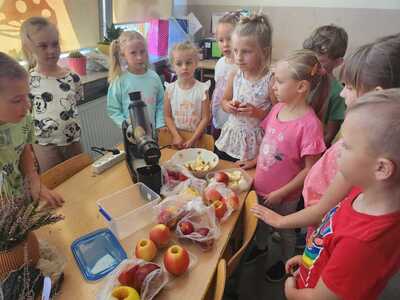 „Dzień Jabłka” w grupie "0a". Był to wyjątkowy dzień, trochę inny niż zwykle. Dzieci poznawały jabłka i ich odmiany. Wzbogacały też swoją wiedzę z zakresu walorów zdrowotnych tych smacznych owoców a także poznały sposoby przetwarzania jabłek. Sześciolatki przygotowały sok z jabłek. Wszystkie zabawy tego dnia odbywały się pod znakiem jabłka.