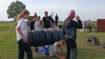 Tym razem uczniowie klas VI-VIII wybrali się do Centrum Treningowe Sobieraj CTS w Kraszewicach. Wyzwania w postaci różnego rodzaju przeszkód terenowych okazały się bardzo motywujące dla naszych podopiecznych. Zajęcia w formie treningu OCR to niesamowite przeżycie dla każdego. Co to jest trening OCR? OCR, czyli “Obstacle Course Racing” to nic innego jak biegi z przeszkodami. Od 2014 roku ta forma aktywności na stałe zagościła w kalendarzu osób, które lubią adrenalinę i trudne, wymagające współpracy eventy. Trasy biegów są bardzo różne, a każda z nich ma swój unikalny klimat. Organizator zadbał także o ognisko z pieczeniem przepysznych kiełbasek. Nasi uczniowie wrócili zmęczeni, ubrudzeni, silniejsi i w świetnych nastrojach. Tak trzeba żyć