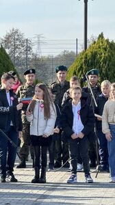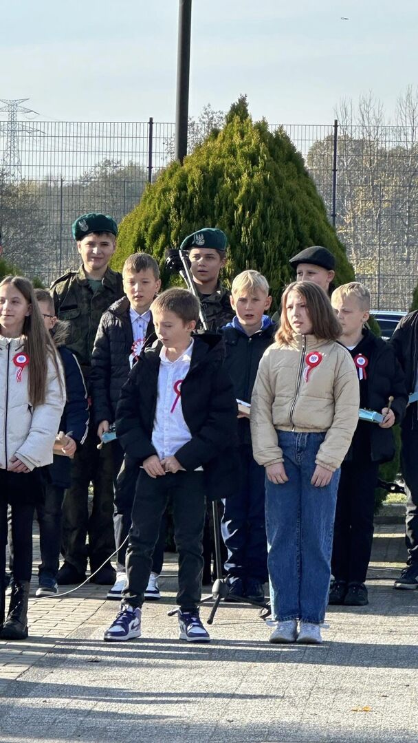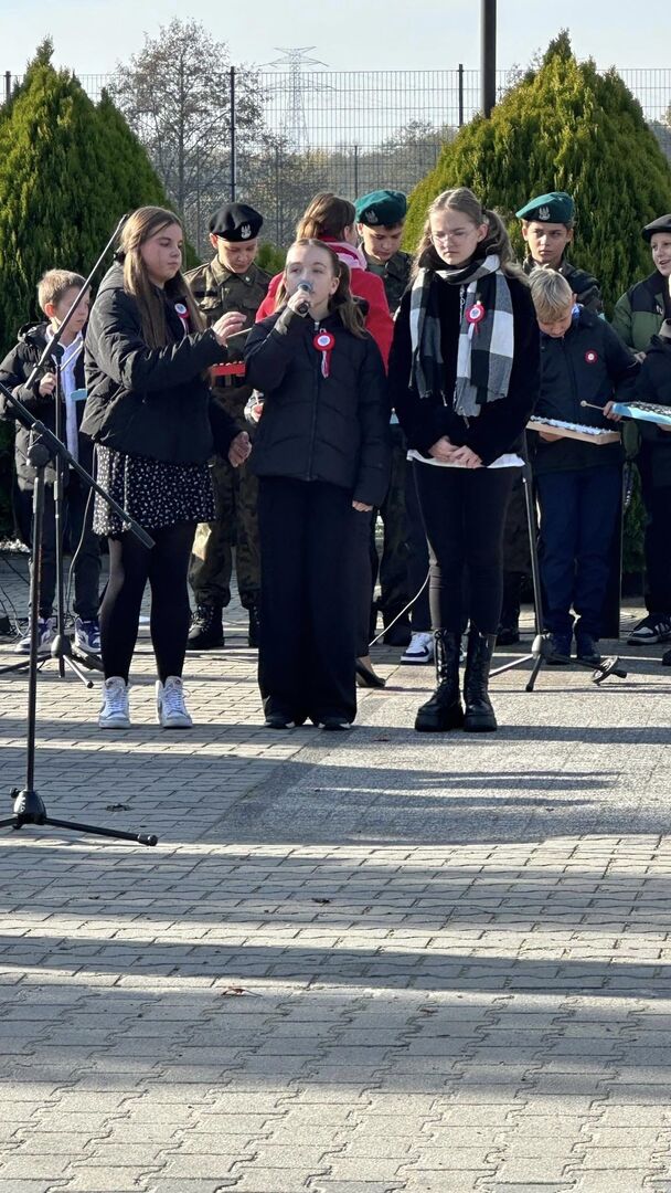 11 listopada przed pomnikiem „Poległych i pomordowanych w latach 1939-1945” uczniowie kl.6 naszej szkoły przypomnieli wszystkim zebranym historię wydarzeń związanych z odzyskaniem niepodległości przez Polskę. Uroczystość tą swym śpiewem wzbogacił chór szkolny oraz zespół instrumentalny