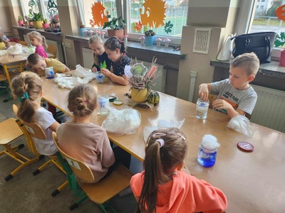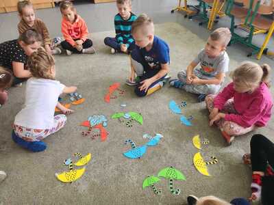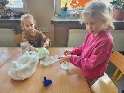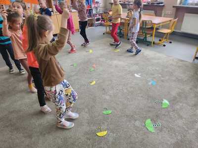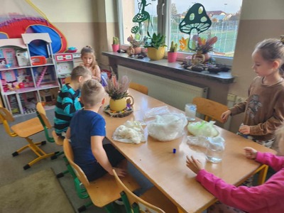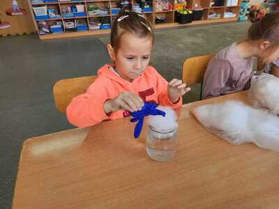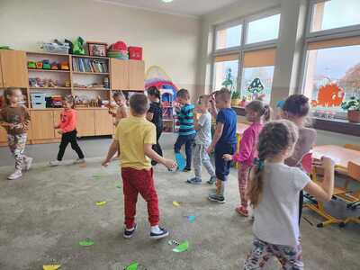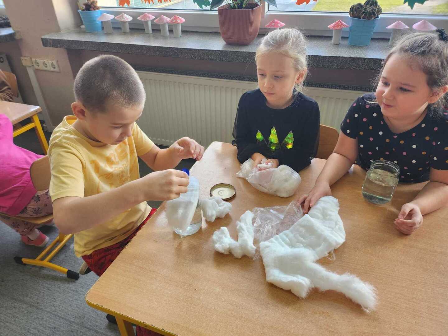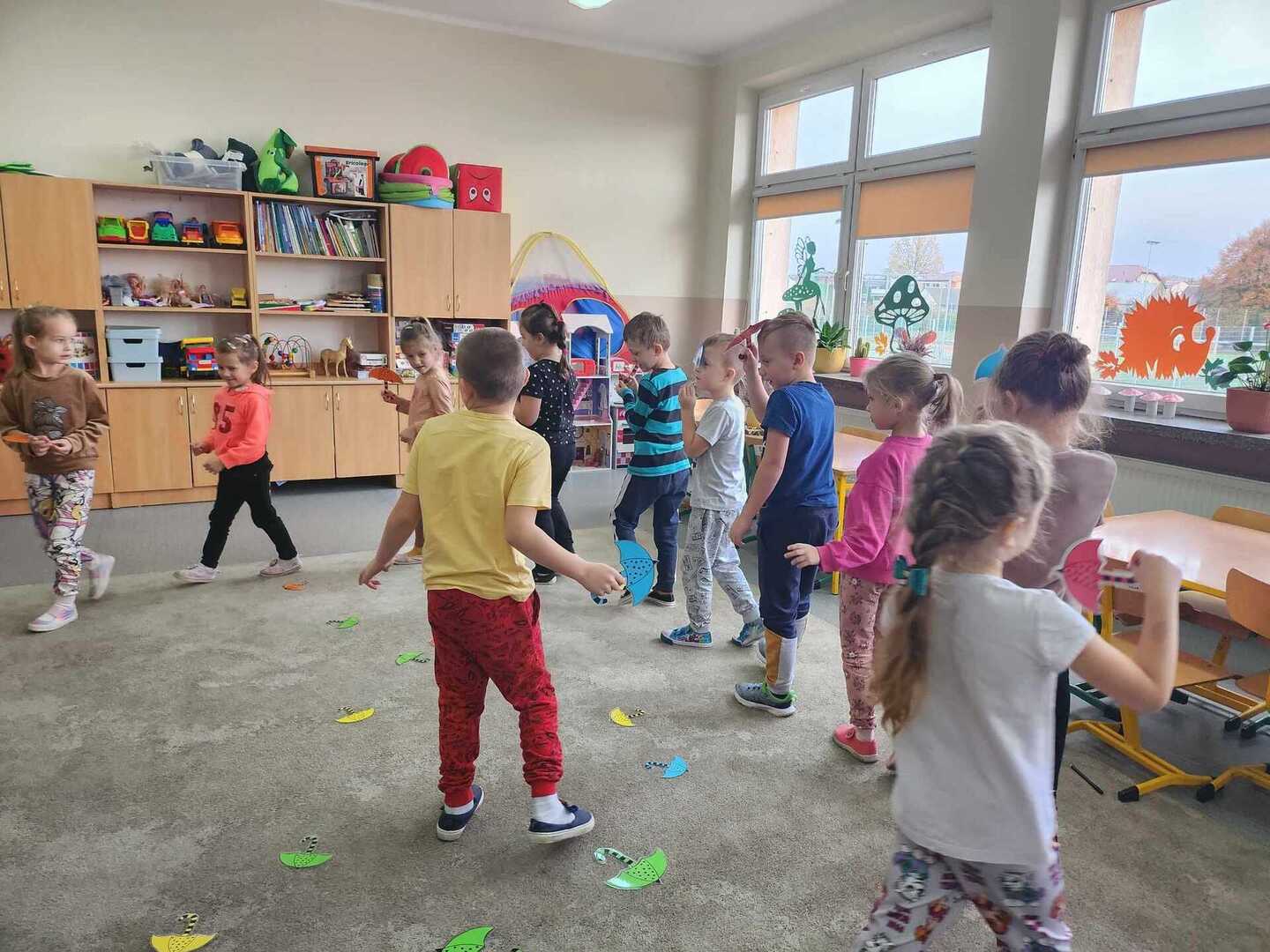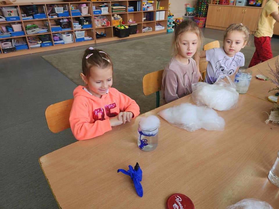 . Dzieci wysłuchały opowiadania, udzielały odpowiedzi na pytania do tekstu, brały udział w zabawach ruchowych a na koniec stworzyły deszczową chmurkę
