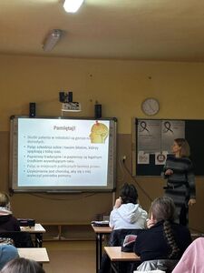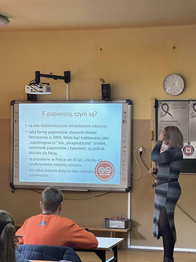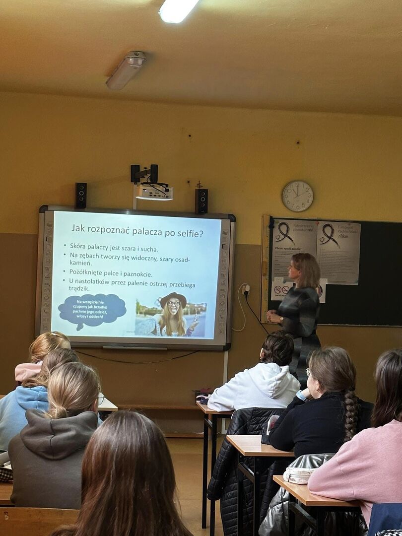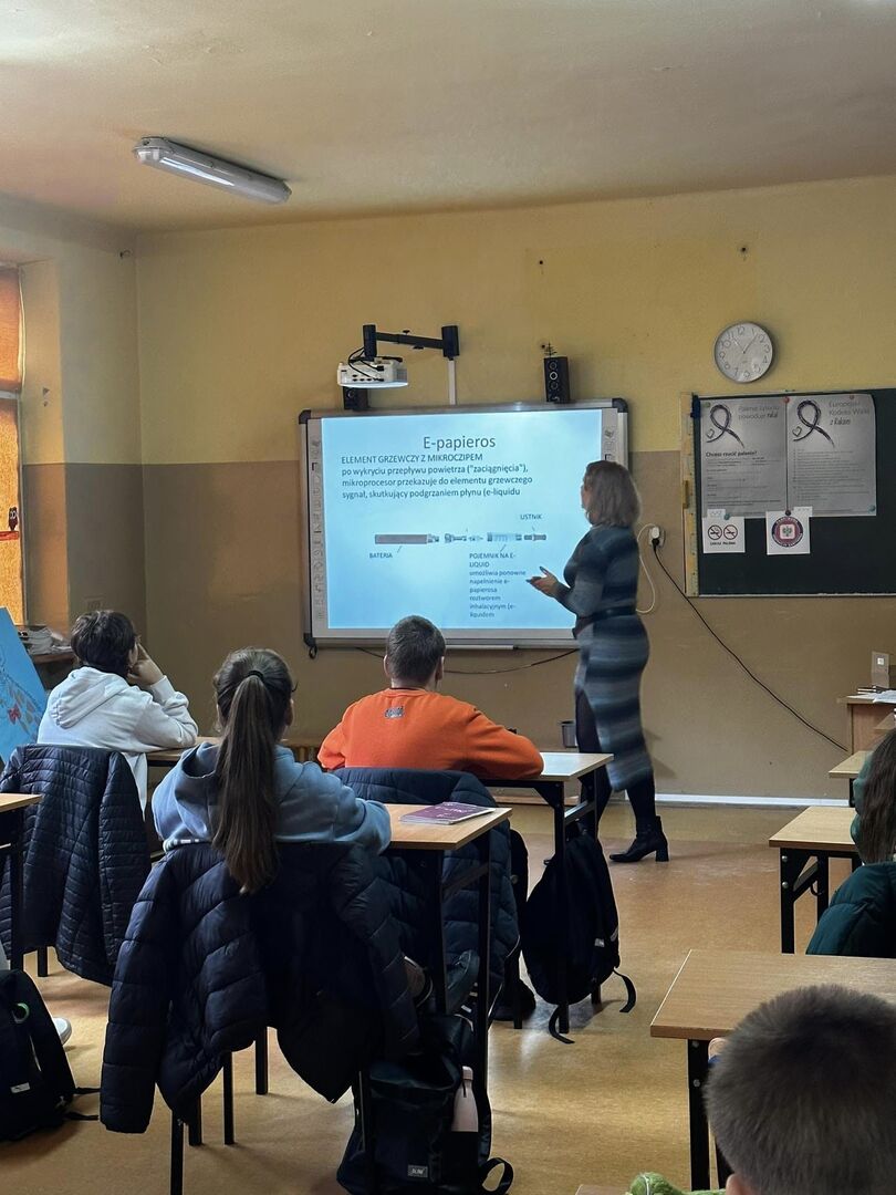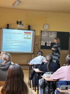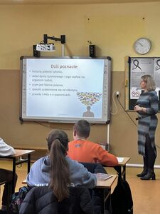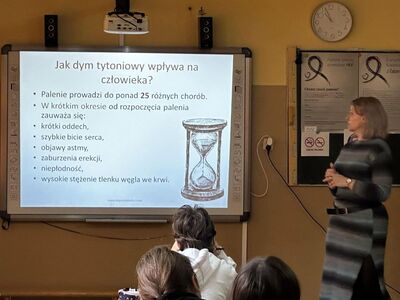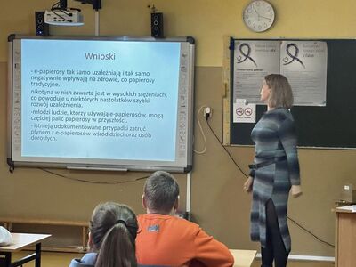 Uczniowie klasy 7 wzięli udział w projekcie pt. "Młodzieżowi liderzy zdrowia- kontra tytoń". Projekt prowadziła pani z wydziału oświaty zdrowotnej i promocji zdrowia z Powiatowej Stacji Sanitarno-Epidemiologicznej w Ostrzeszowie p. Aleksandra Knychała. Dziękujemy za niezwykle wartościową lekcję