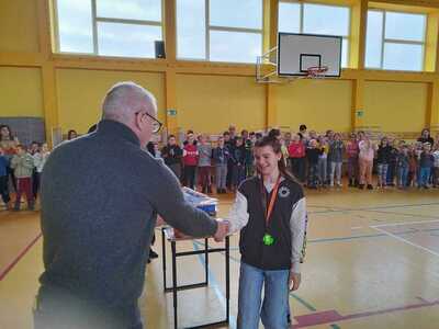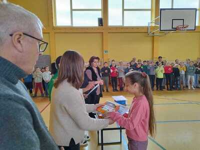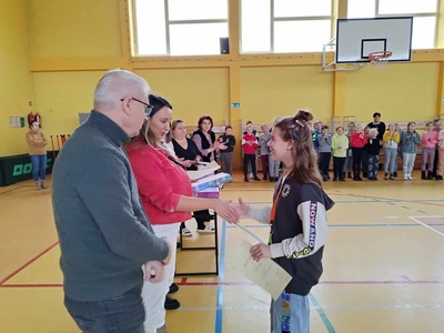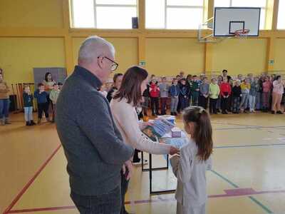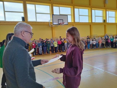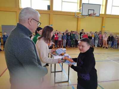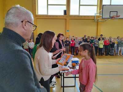 W ubiegłym tygodniu wręczono uczniom nagrody i dyplomy za udział, yróżnienie oraz zdobycie miejsca na podium w następujących konkursach: