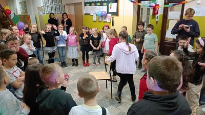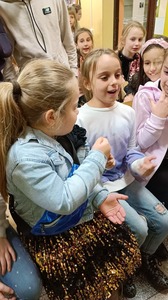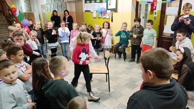 Tak bawili się nasi najmłodsi podopieczni podczas dyskoteki szkolnej z okazji Andrzejek. Dużo radości, tanecznych wygibasów czy konkursów muzycznych. Oczywiście jak na Andrzejki przystało nie zabrakło wróżb dotyczących przyszłości naszych uczniów. Zabawy co niemiara plus smakołyki przygotowane przez Samorząd Uczniowski, czyli to co lubimy najbardziej