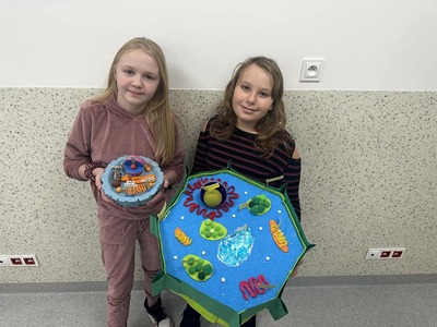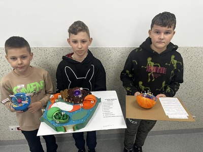 Uczniowie klasy 5 wzięli udział w szkolnym konkursie, który polegał na wykonaniu przestrzennego modelu komórki.