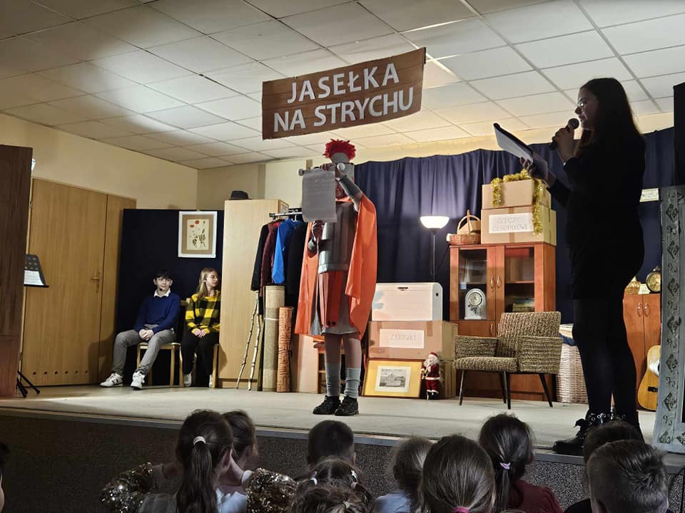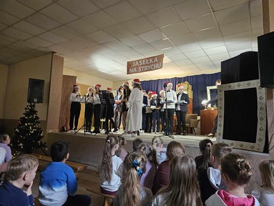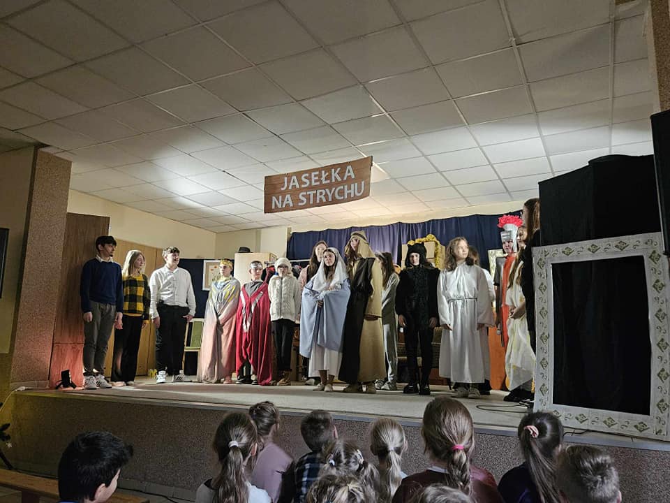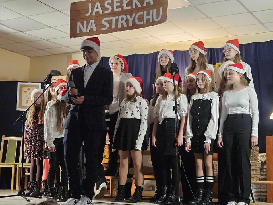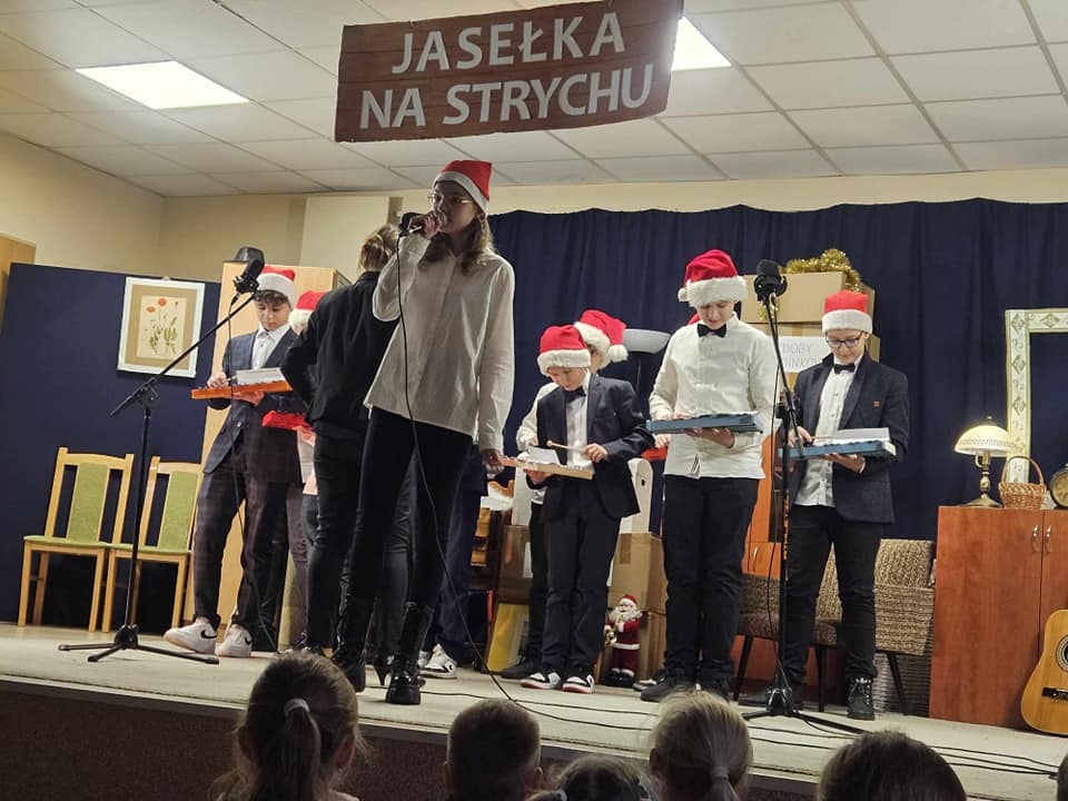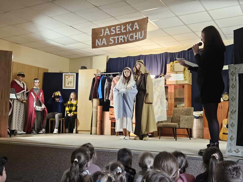 18 grudnia o godzinie 10:30 w sali Domu Kultury w Czajkowie zgromadzili się wszyscy uczniowie naszej szkoły wraz z nauczycielami i pracownikami obsługi aby, poczuć świąteczny nastrój. W świąteczny klimat wprowadziło nas przedstawienie jasełek przygotowanych przez uczniów klasy 7, występ chóru szkolnego oraz zespołu instrumentalnego