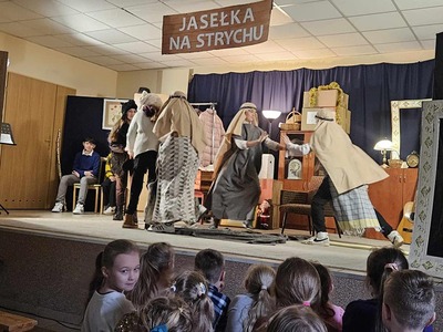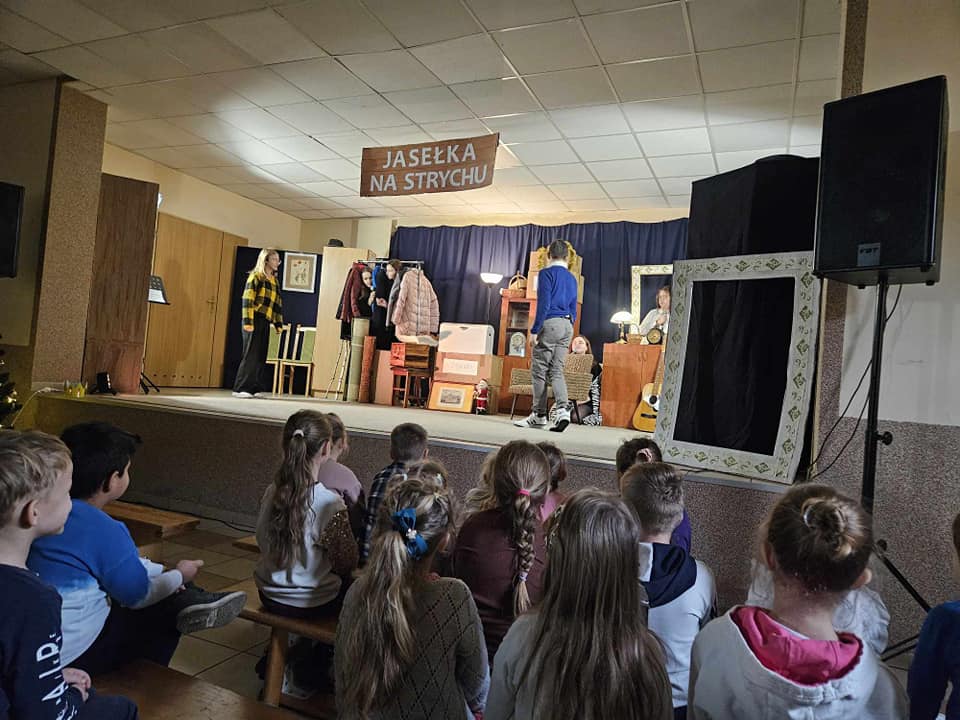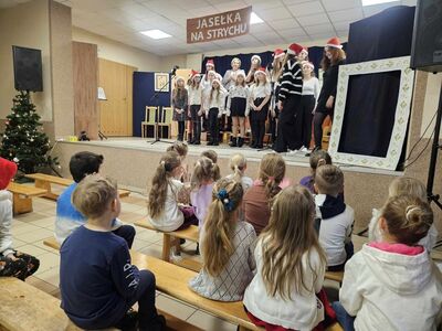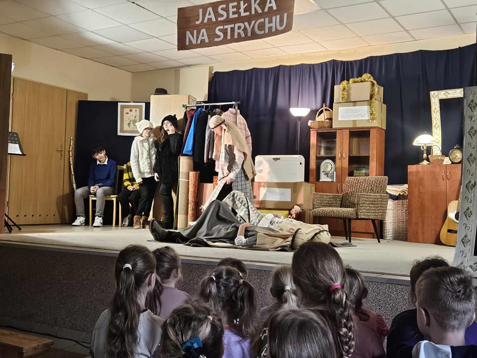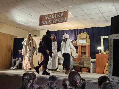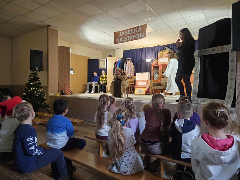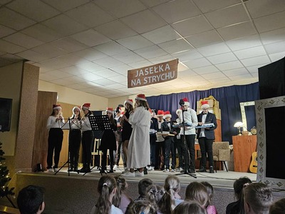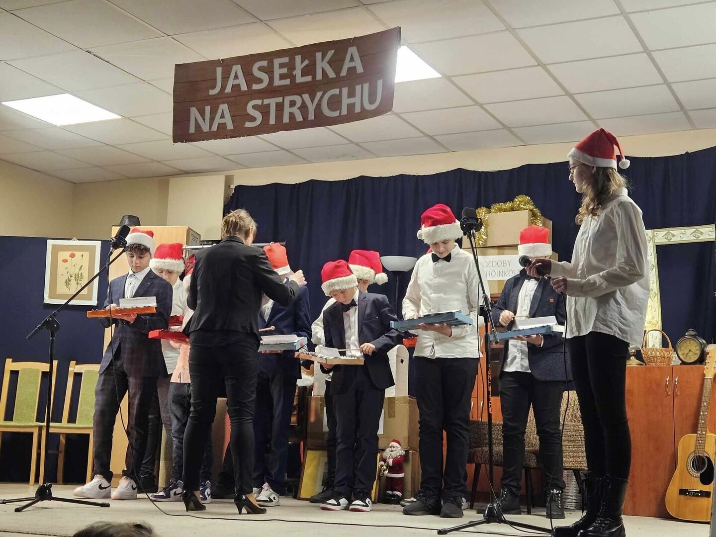 18 grudnia o godzinie 10:30 w sali Domu Kultury w Czajkowie zgromadzili się wszyscy uczniowie naszej szkoły wraz z nauczycielami i pracownikami obsługi aby, poczuć świąteczny nastrój. W świąteczny klimat wprowadziło nas przedstawienie jasełek przygotowanych przez uczniów klasy 7, występ chóru szkolnego oraz zespołu instrumentalnego