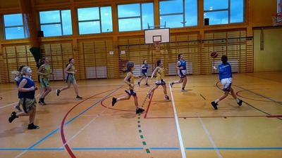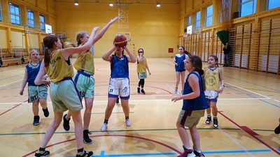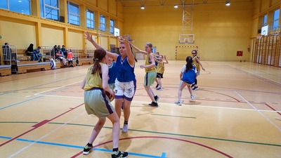Wczoraj w SP Czajków rozegraliśmy szkoleniowo wartościowe sparingi z UKS Moskawa Środa Wlkp. Drużyna ze Środy obecnie przebywa na obozie w SP Czajków, dzięki czemu była świetna okazja by zmierzyć się z nimi. Nasza drużyna złożona głównie z uczennic szkół z Czajkowa i Kraszewic, które w większości rozpoczynają dopiero swoją przygodę z meczami i turniejami. Początkowo rozegraliśmy mecze według metody IMOPEKSIS, czyli pomieszaliśmy zawodniczki, a ich zadaniem było liczenie wybranych elementów technicznych (w każdym meczu innych). To trudne zadanie, kiedy grasz z osobami starszymi lub młodszymi, nie znasz ich, musisz się skoncentrować na zadaniach, a jeszcze trzeba grać mecz. Dzięki temu następuje duży rozwój psychopedagogiczny, umysłowy i techniczny. Ale nie od razu po grze, cały efekt przyjdzie po kilku dniach w ramach refleksji i przerobienia materiału przez głowę. Następnie rozegraliśmy tradycyjny sparing między Play Basket a UKS Moskwa. W sumie nie do końca tradycyjny, bo oprócz zdobytych punktów liczyły się także punkty coachingowe, polegające na 3 krokach przyspieszenia po podaniu. Zawodniczki przeżyły wiele emocji, zarówno trudnych, jak i radosnych. Sparingi uważamy za udane.