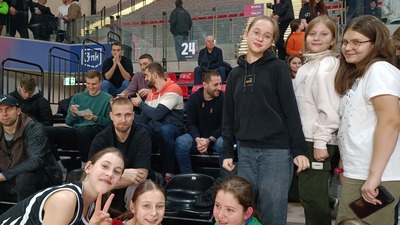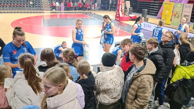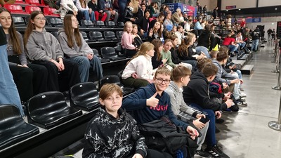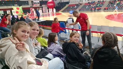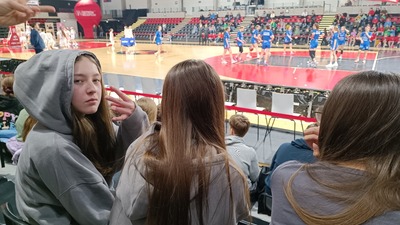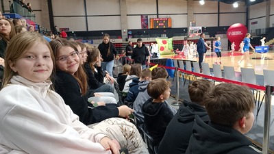 NASI UCZNIOWIE NA MECZU KOSZYKÓWKI 1. LIGI KOBIET