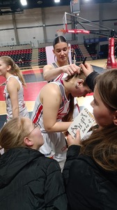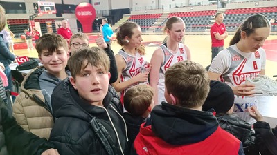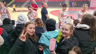 W środę nasi podopieczni mieli możliwość uczestnictwa w meczu 1. ligi kobiet w Ostrowie Wlkp. Spotkanie pomiędzy KS Basket Ostrovia Ostrów Wlkp. kontra Enea AZS AJP II Gorzów Wlkp. zostało rozegrane w przepięknej hali 3MK Arena Ostrów. Oprócz samego meczu na kibiców czekało sporo dodatkowych atrakcji z okazji Dnia Kobiet. Nasi uczniowie mogli zrobić fotki i otrzymać autografy nie tylko od zawodniczek Ostrovii, ale także od zawodników ekstraklasowego BM Slam Stal Ostrów Wlkp. Sam mecz przyniósł wiele emocji i efektownych akcji w wykonaniu 1-ligowych koszykarek. Po pierwszej wyrównanej połowie, w drugiej Ostrowianki zdominowały mecz i pewnie wysoko wygrały. Wszyscy zadowoleni i pełni emocji szczęśliwie wróciliśmy do domu