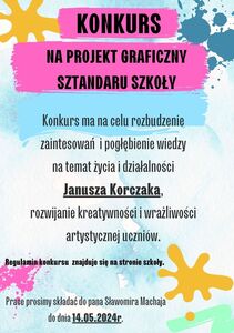 KONKURS NA PROJEKT GRAFICZNY SZTANDARU SZKOŁY Zapraszamy do wzięcia udziału w konkursie na projekt graficzny sztandaru naszej szkoły. Szczegóły na plakacie i w załączonym regulminie. Zdjęcia Załączniki REGULAMIN KONKURSU [19.91 kB] Zobacz również ST. PATRICK'S DAY WORD MASTER - ADJECTIVS (ELIMINACJE) WIECZÓR FILMOWY KONKURS NA PROJEKT GRAFICZNY SZTANDARU SZKOŁY DZIEŃ ZIEMI (2024) I TURNIEJ KOSZYKÓWKI DZIEWCZĄT O PUCHAR WÓJTA... 21 kwietnia 2024 Aktualności Wydrukuj Udostępnij Wyświetlono: 107