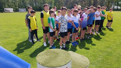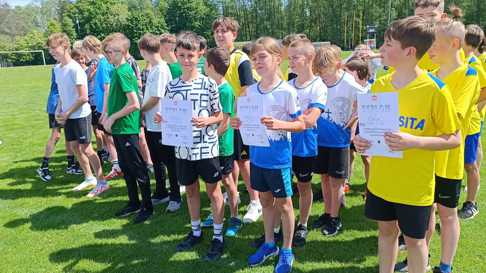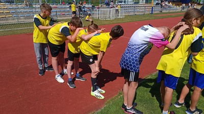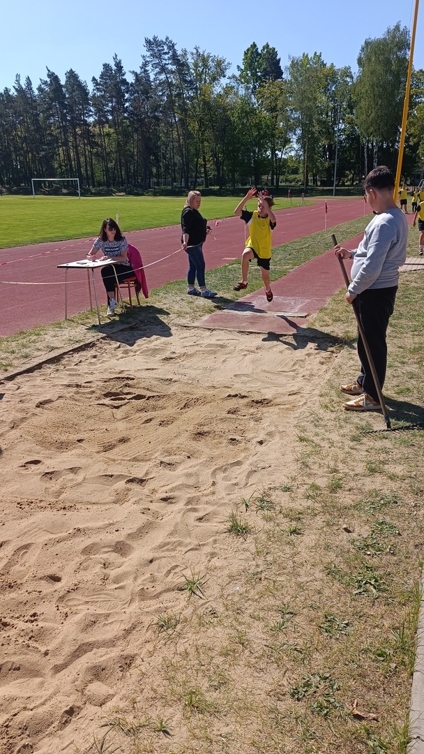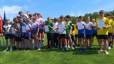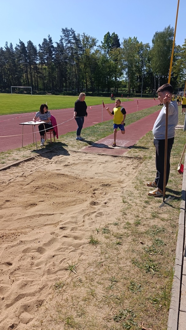 W ostatnim czasie bardzo dużo się dzieje w aspekcie sportowym wśród naszych uczniów. Tym razem chłopcy z klas VI i młodszych wzięli udział w Mistrzostwach Powiatu Ostrzeszowskiego w czwórboju lekkoatletycznym. Zawody składały się z następujących konkurencji: rzut piłeczką palantową, bieg na 60 m, bieg na 1000 m, skok w dal z rozbiegu. Każdy uczestnik brał udział w każdej konkurencji, następnie wyniki wszystkich zawodników były sumowane. Klasyfikacja tylko drużynowa, na którą pracowali wszyscy chłopcy. Wśród 7 startujących szkół zajmujemy ostatecznie V miejsce, co jest niezłym rezultatem biorąc pod uwagę, że 3 naszych reprezentantów było z 4 klasy. Z naszej szkoły udział wzięli: Kaźmierczak Paweł, Koprowski Konrad, Olejnik Kacper, Potapchuk Danylo, Kostiuk Demian, Siankiewicz Emil.