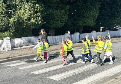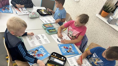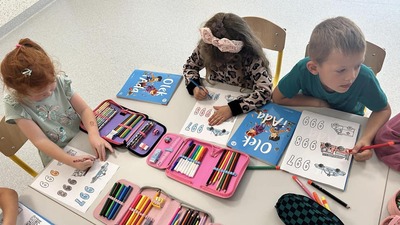 W tym tygodniu przypominaliśmy sobie zasady ruchu drogowego. Uczyliśmy się, jak przechodzić bezpiecznie po pasach, malowaliśmy sygnalizator dla pieszych za pomocą paluszków, a następnie utrwalaliśmy numery alarmowe - wszystko poszło, jak z płatka, zobaczcie sami.