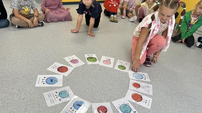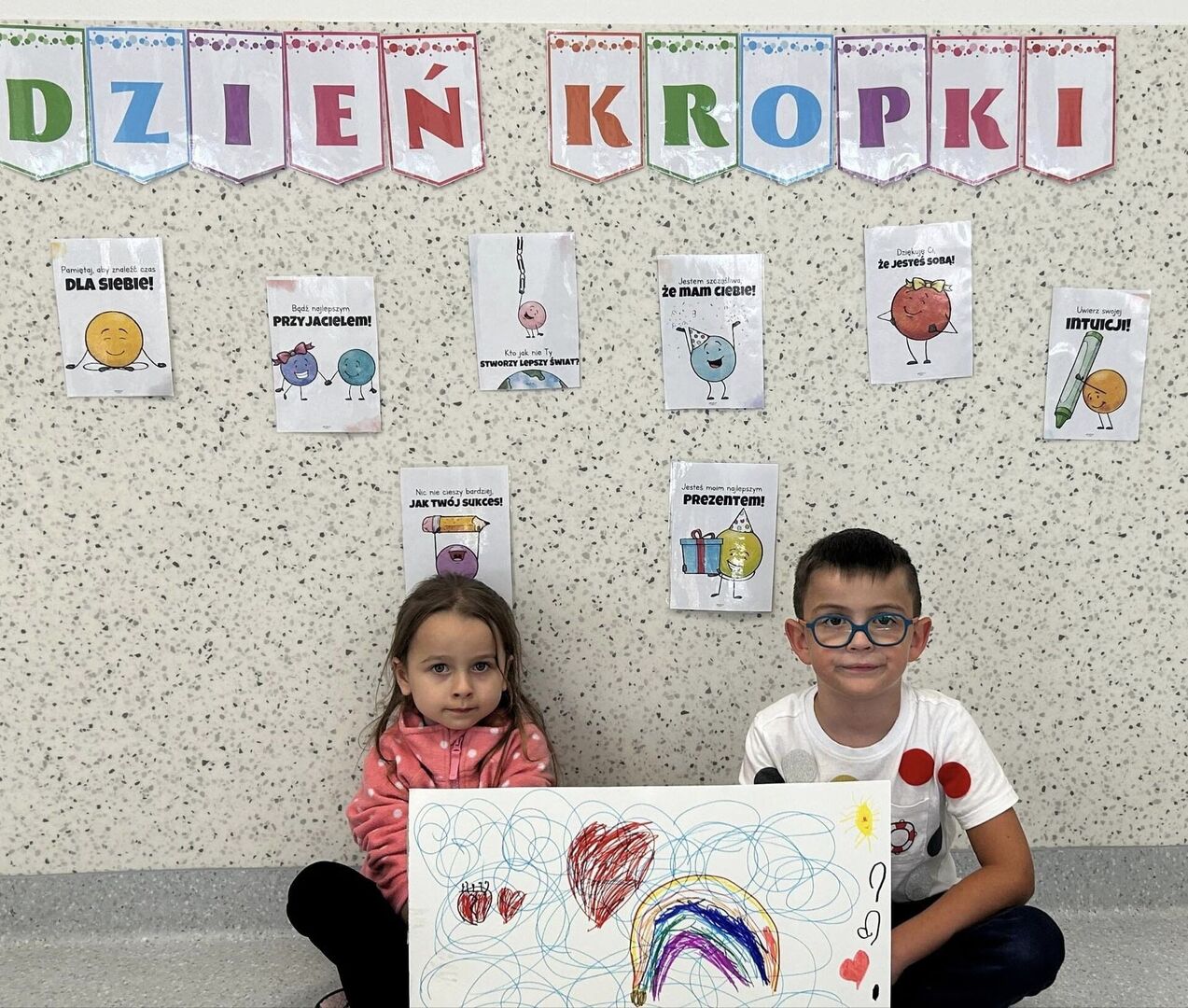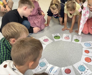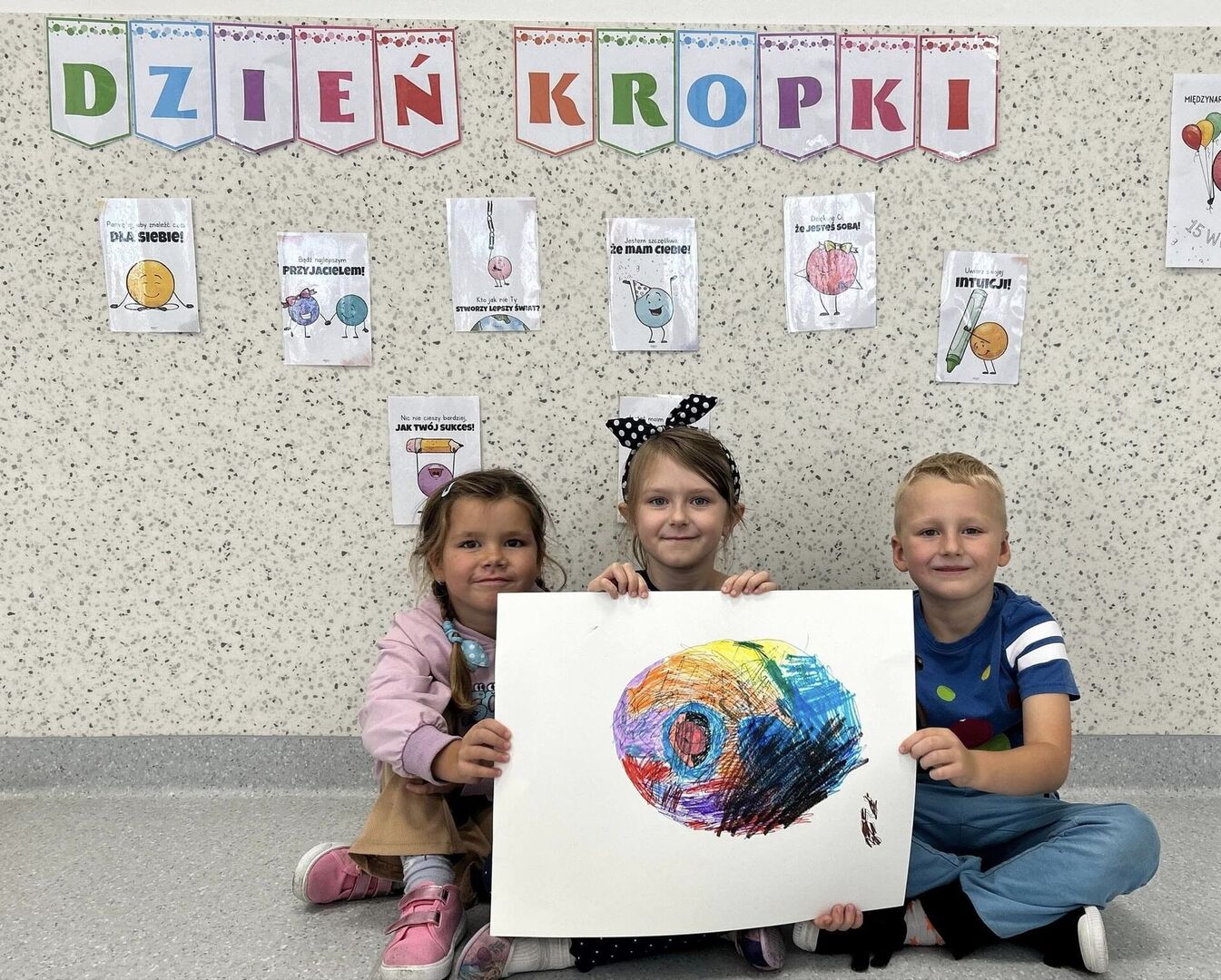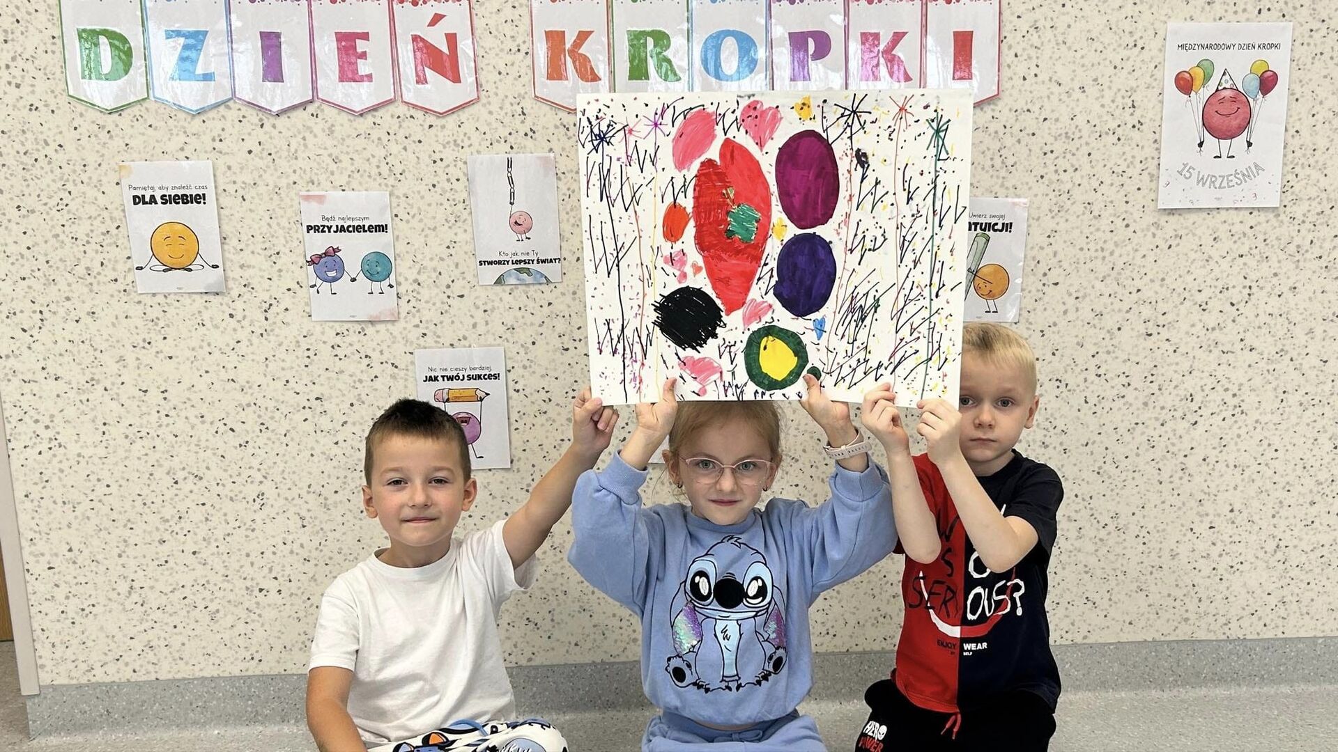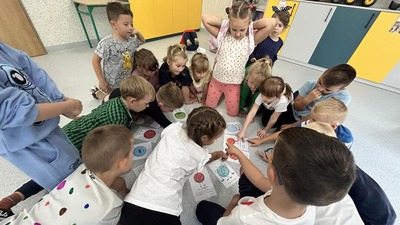 Na początku poznaliśmy genezę Światowego Dnia Kropki. Tego dnia nasze zabawy wypełnione były kolorowymi kropkami, rozpoznawaliśmy emocje, a także zostaliśmy podzieleni na grupy - naszym zadaniem było narysować talent. U naszych Misiów kreatywności, pomysłowości nie brakowało! Było kolorowo, „kropkowo” i radośnie.