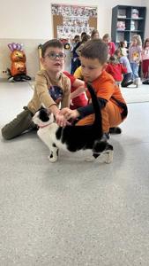 W środę Grupa Misiów przwitała dwóch niespotykanych w szkole gości: Kotkę Misię oraz Królika Miniaturkę.