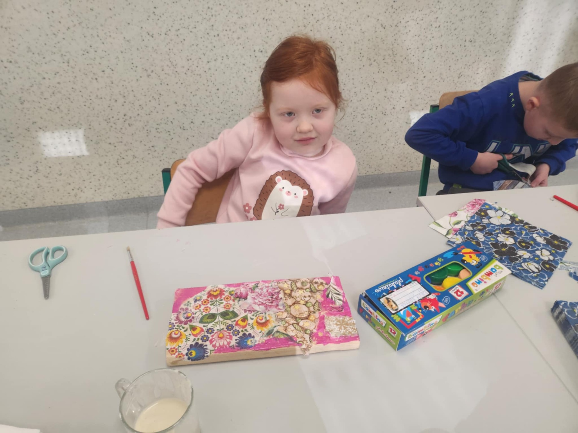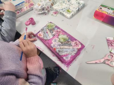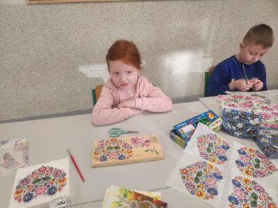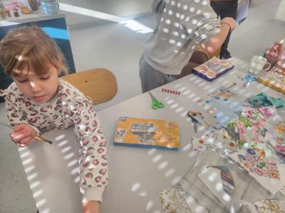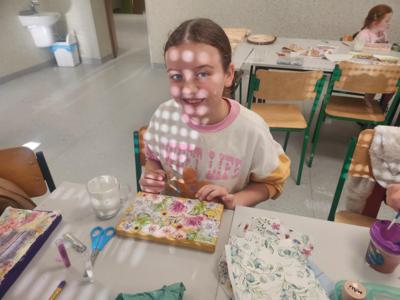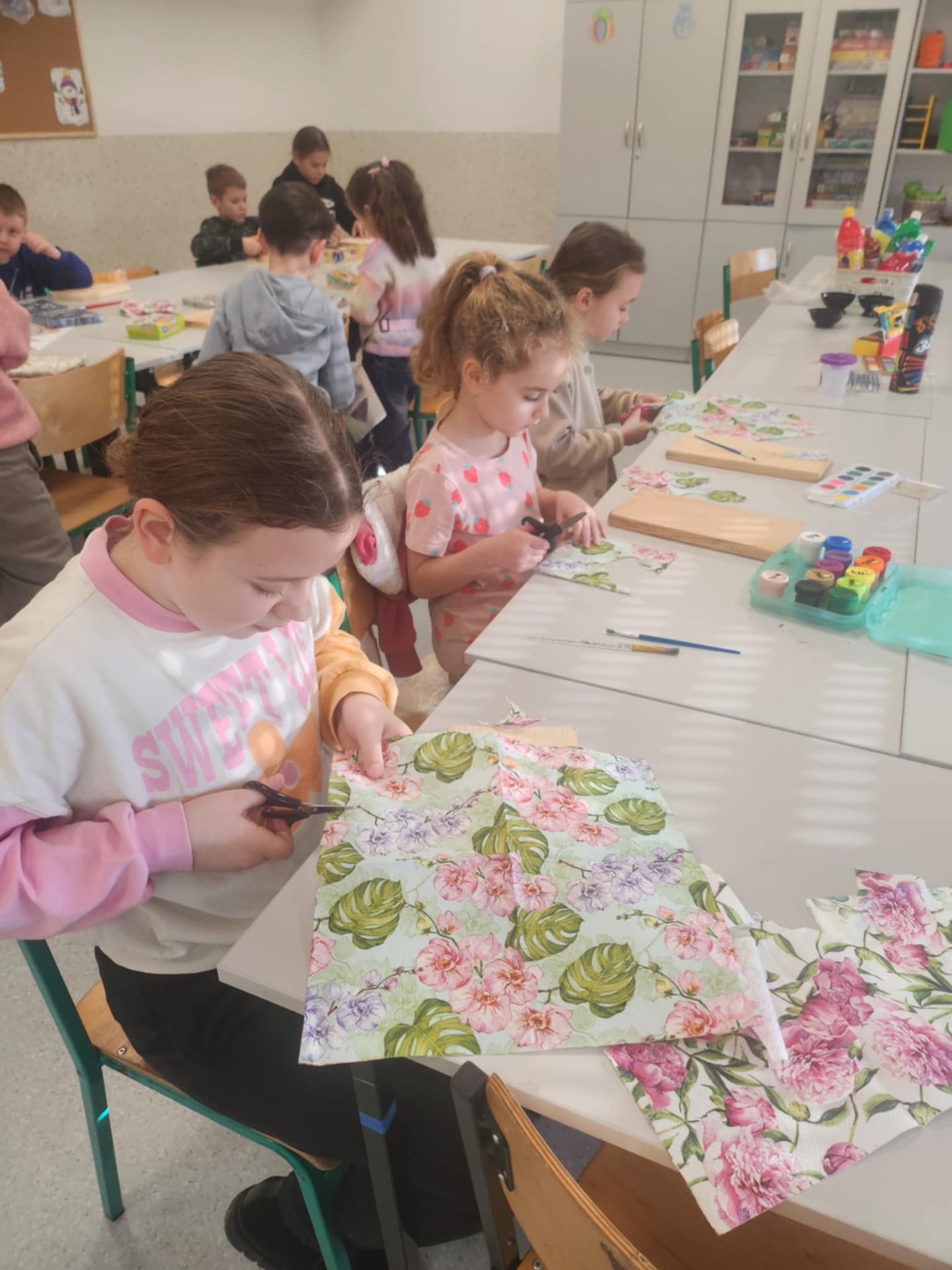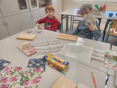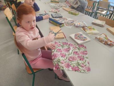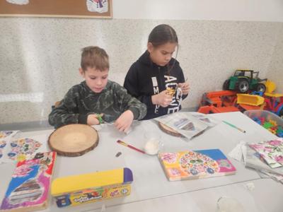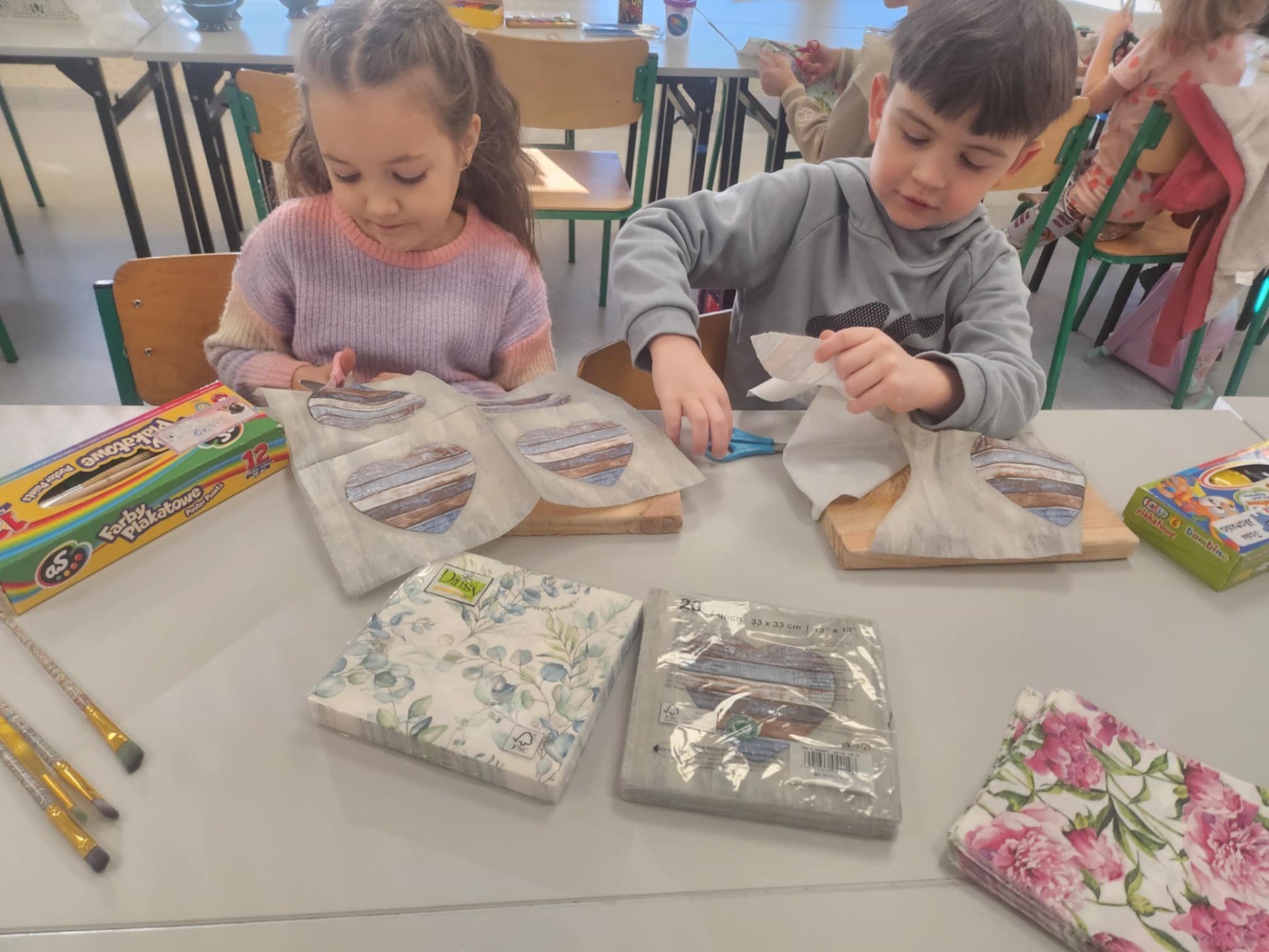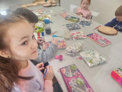 Warsztaty decoupage przyciągnęły spore grono małych artystów. Podczas tych zajęć uczestnicy poznali techniki ozdabiania przedmiotów metodą decoupage. Dzieci tworzyły unikalne dekoracje, ozdabiając drewniane deseczki. Zajęcia rozwijały kreatywność, cierpliwość i precyzję.