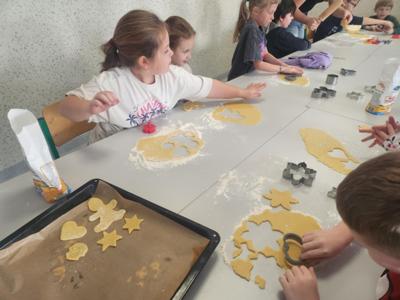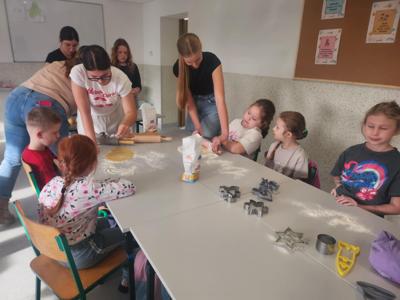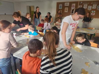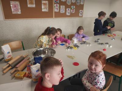 Podczas warsztatów kulinarnych dzieci miały okazję wcielić się w małych szefów kuchni. Pod czujnym okiem nauczycielek przygotowywały pyszne ciasteczka. To była świetna okazja do nauki podstaw gotowania, rozwijania zdolności manualnych i pracy zespołowej.