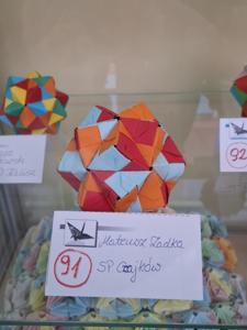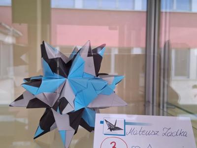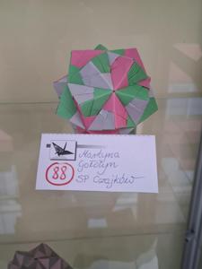 Na duże wyróżnienie zasługuje Marysia Przybyłek z klasy 7, której bryła zajęła 2 miejsce w plebiscycie publiczności na najładniejsza bryłę origami.