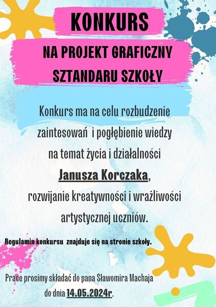 21 kwietnia 2024 Aktualności KONKURS NA PROJEKT GRAFICZNY SZTANDARU SZKOŁY Zapraszamy do wzięcia udziału w konkursie na projekt graficzny sztandaru naszej szkoły. Szczegóły na plakacie i w załączonym regulminie. Czytaj więcej